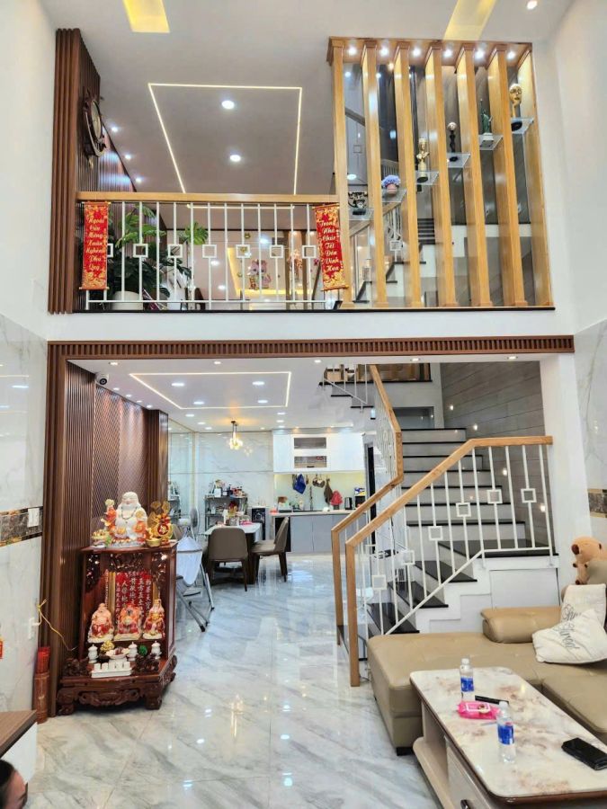 Nhà 5 tầng cực thoáng mát, BTCT kiên cố gồm Gara Ôtô, PK, Bếp, tầng lững, 4PN, 5WC, Phòng thờ, máy lạnh lắp từ phòng khách lên sân thượng.