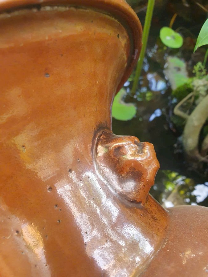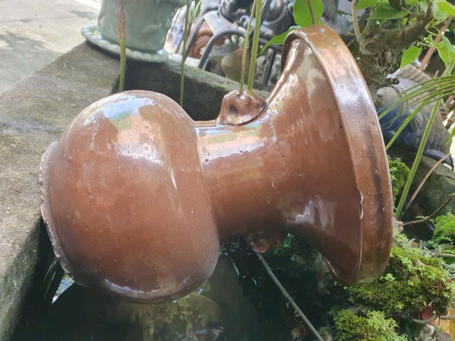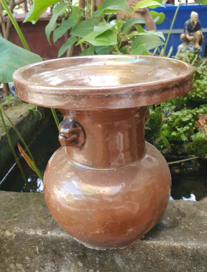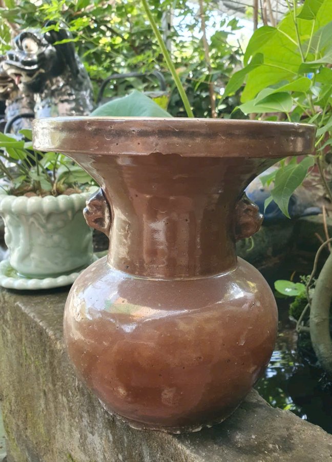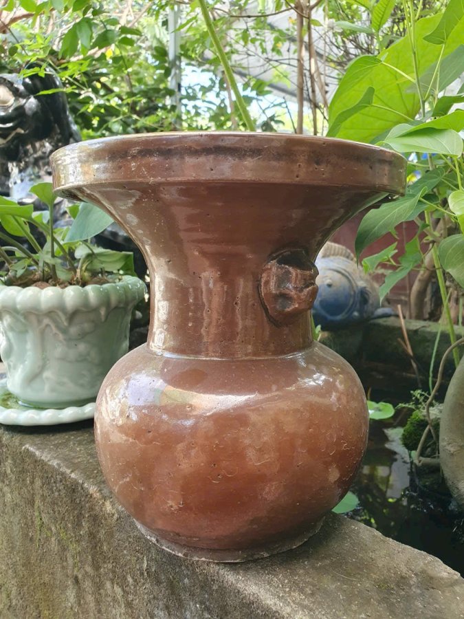 Ống nhổ 2 bợm men nâu caffe(nâu tương).Cao 23,3cm*đkm 21,3cm*vb 56cm.中国清朝早期酱色釉双耳扎斗(cuối thế kỷ 17 đầu thế kỷ 18,thời kỳ đầu nhà Thanh) đặc trung cốt gốm xốp.Có kèm ảnh tư liệu cho khách tham khảo.