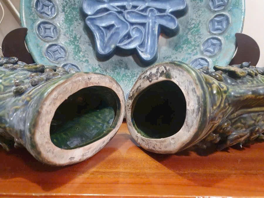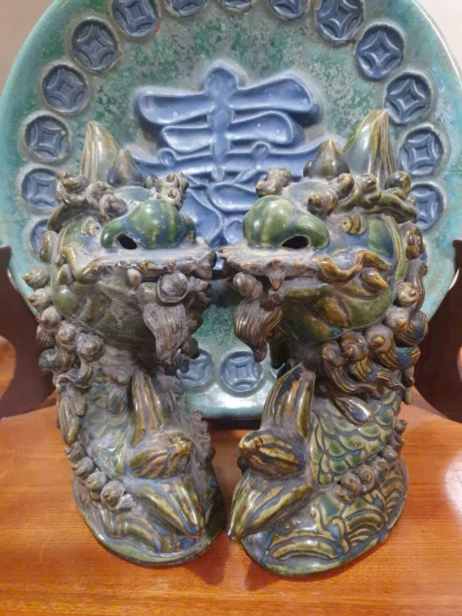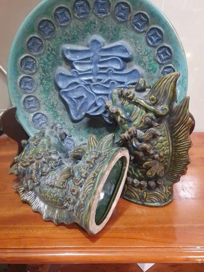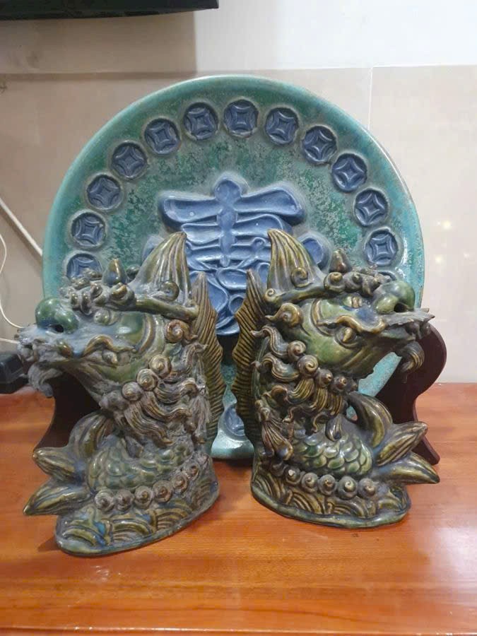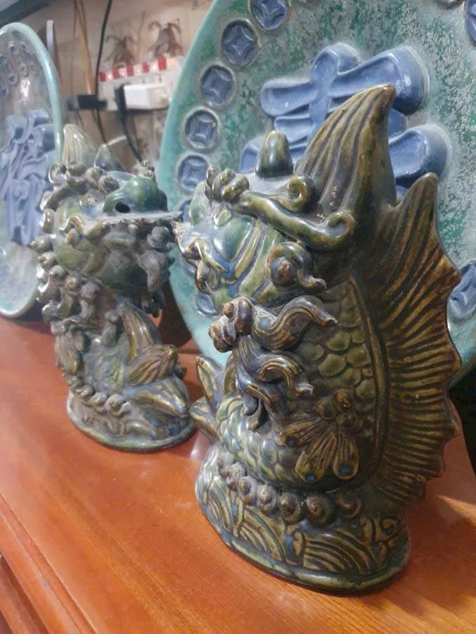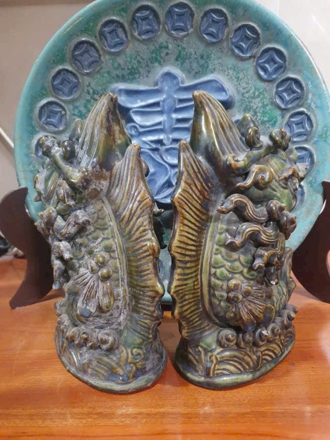 Cặp cá hóa long.Cao 26cm*15,5cm.Vuốt tay lành nặng.Men già,hỏa biến đẹp.