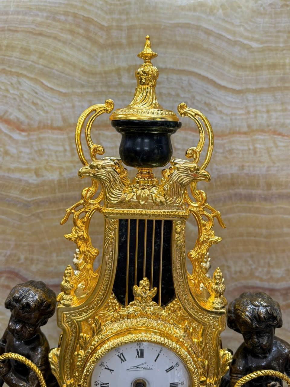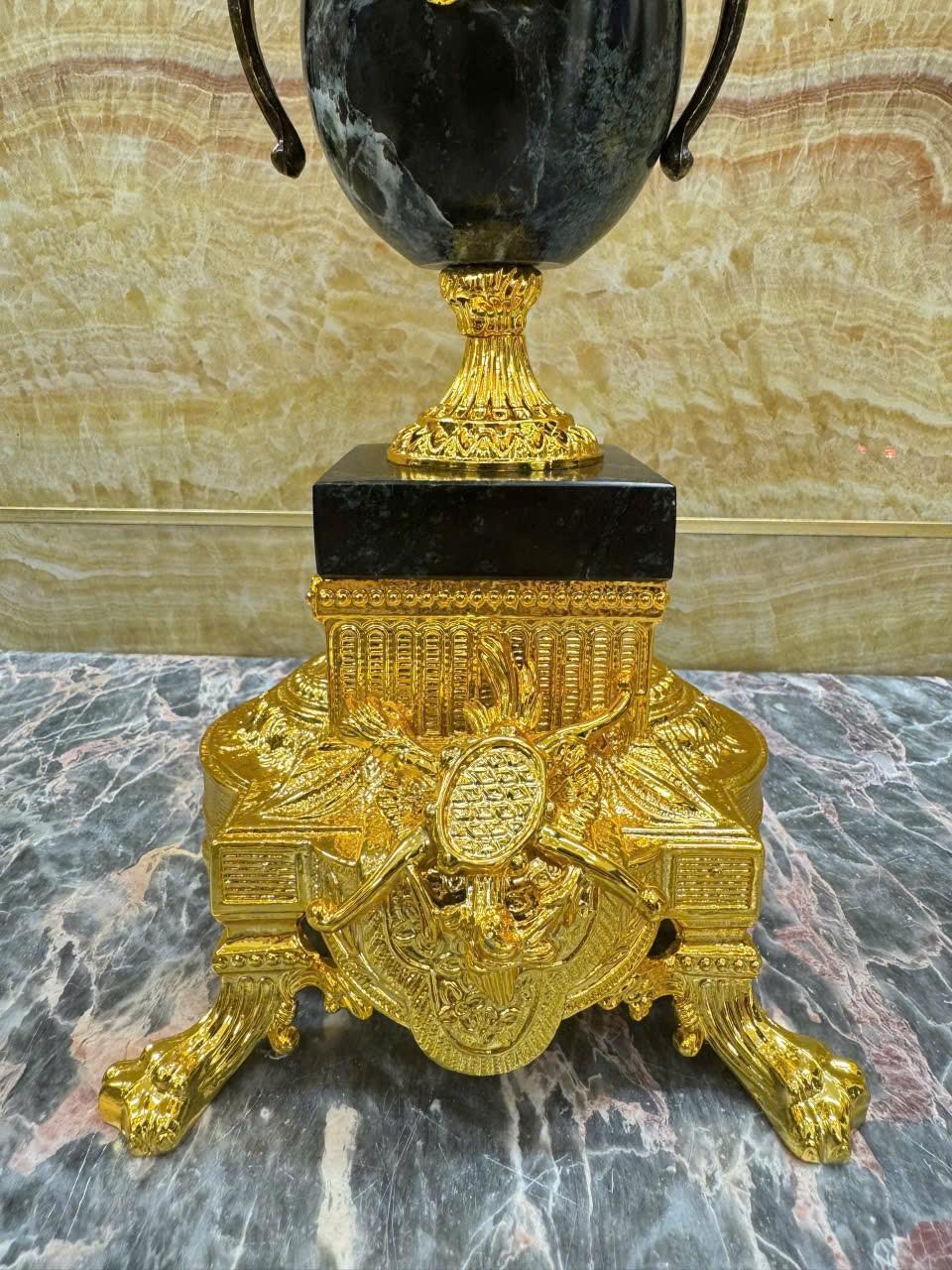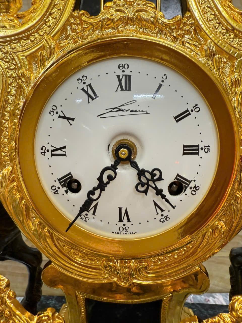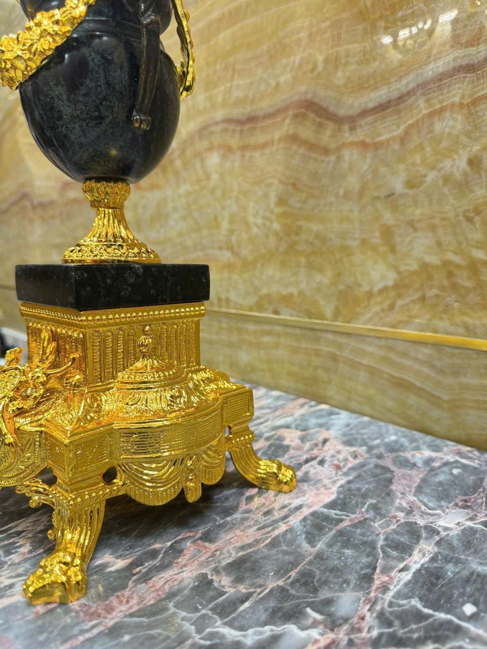 •-Bộ Đồng Hồ & Chân Nến Imperial đá Cẩm thạch xanh - made in ITALY