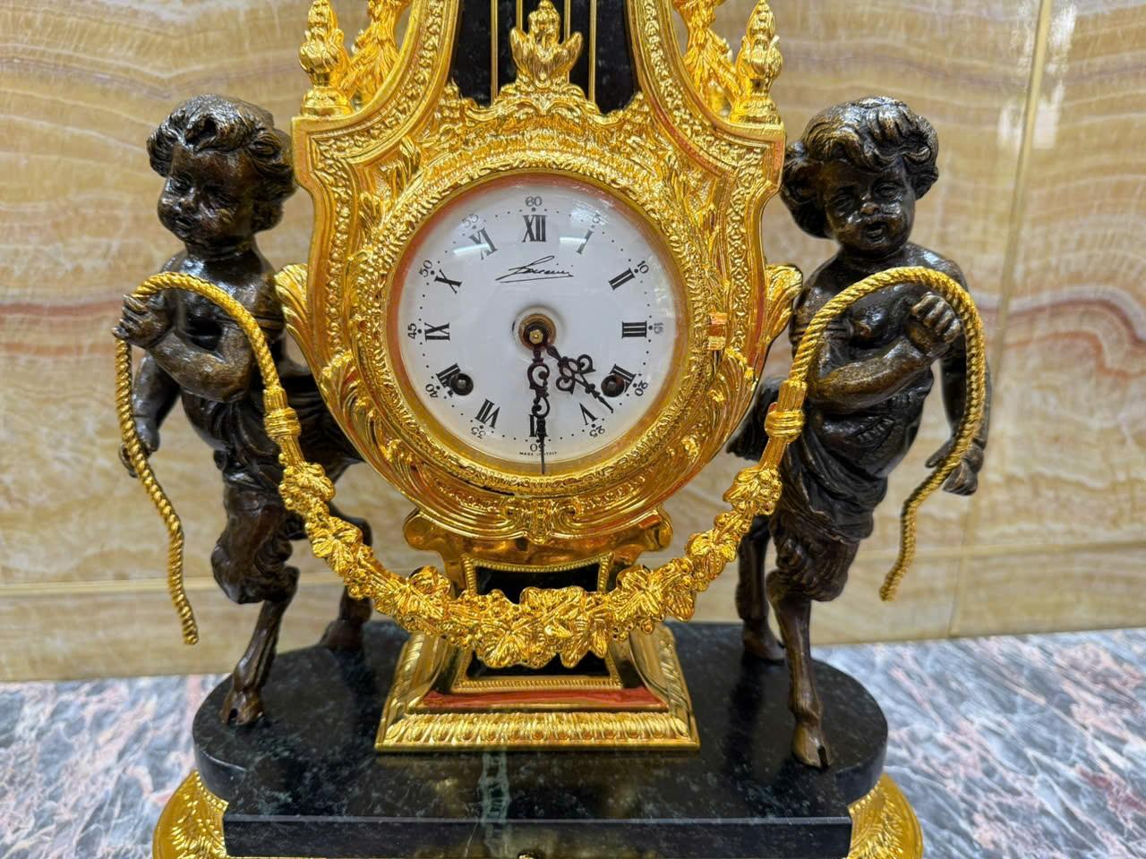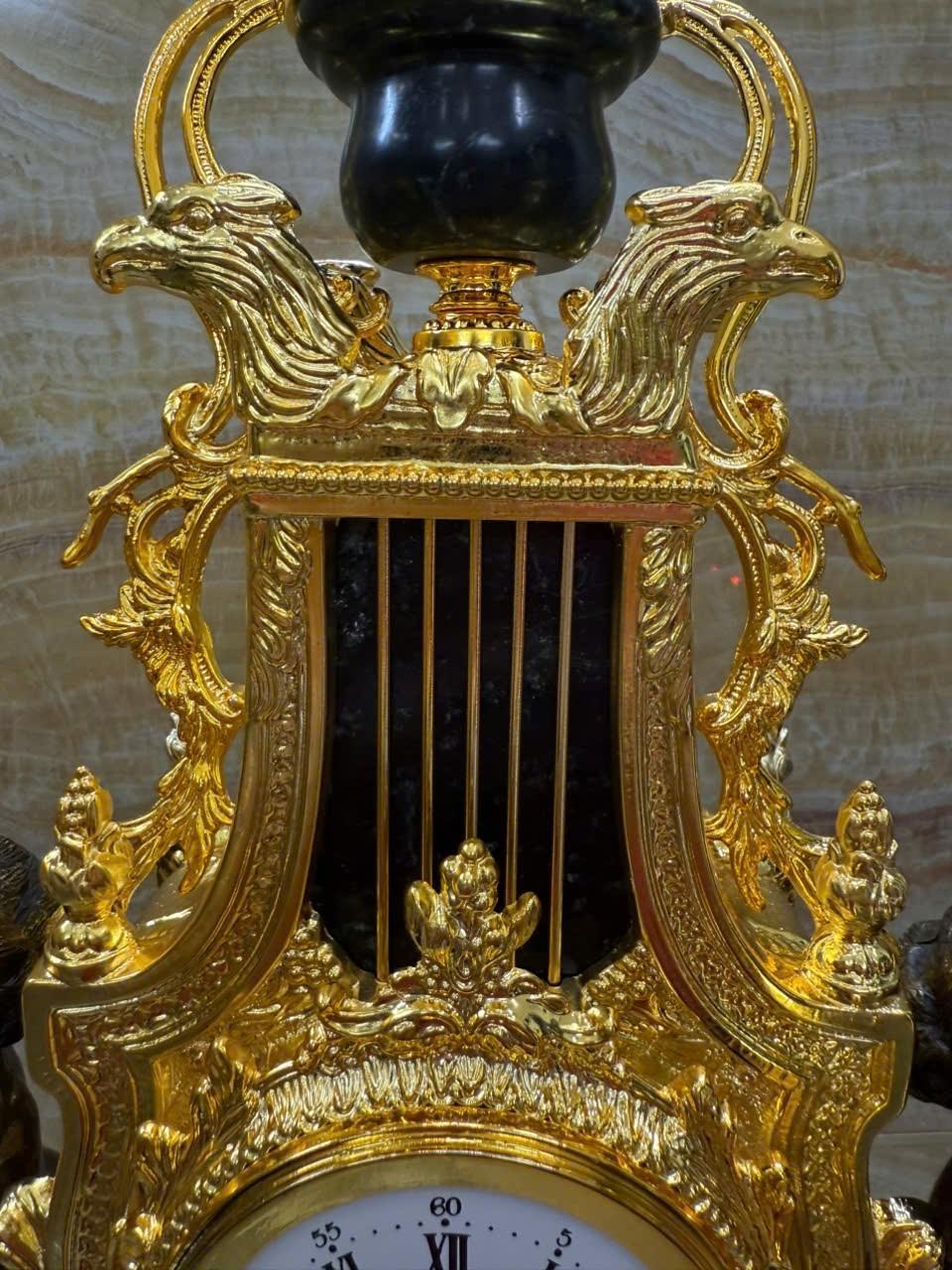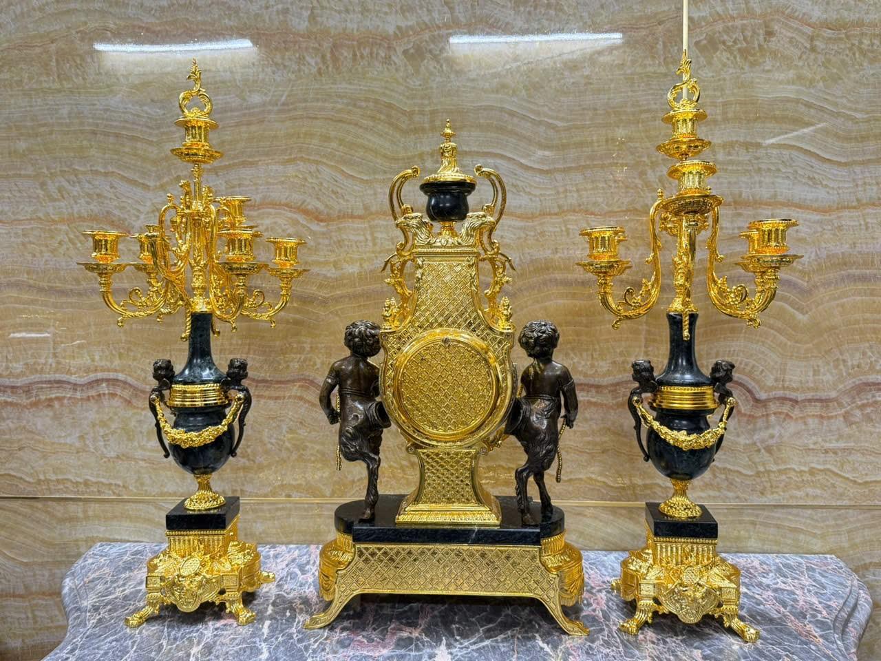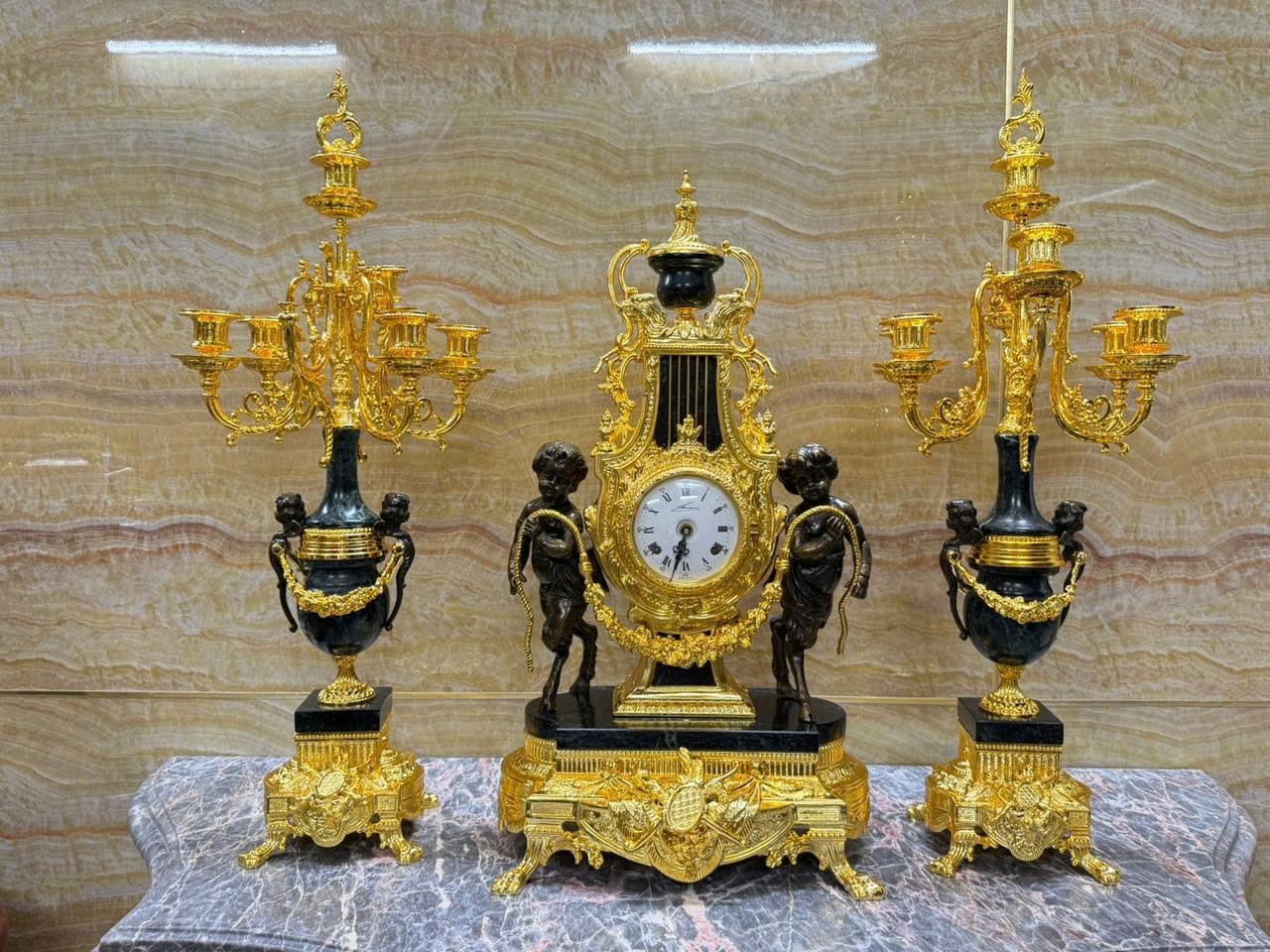 •-Bộ Đồng Hồ & Chân Nến Imperial đá Cẩm thạch xanh - made in ITALY