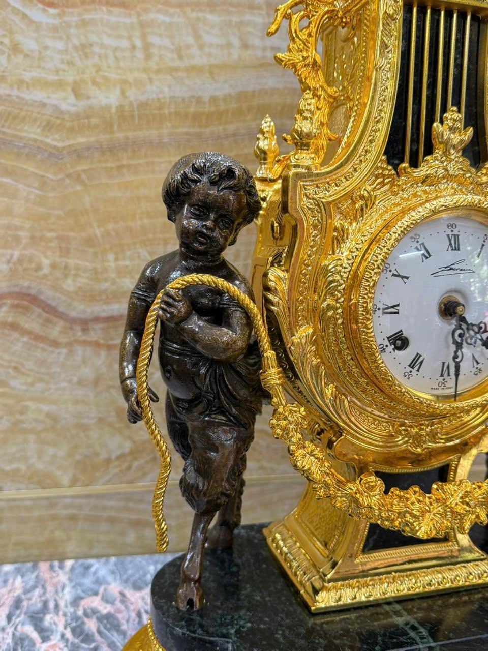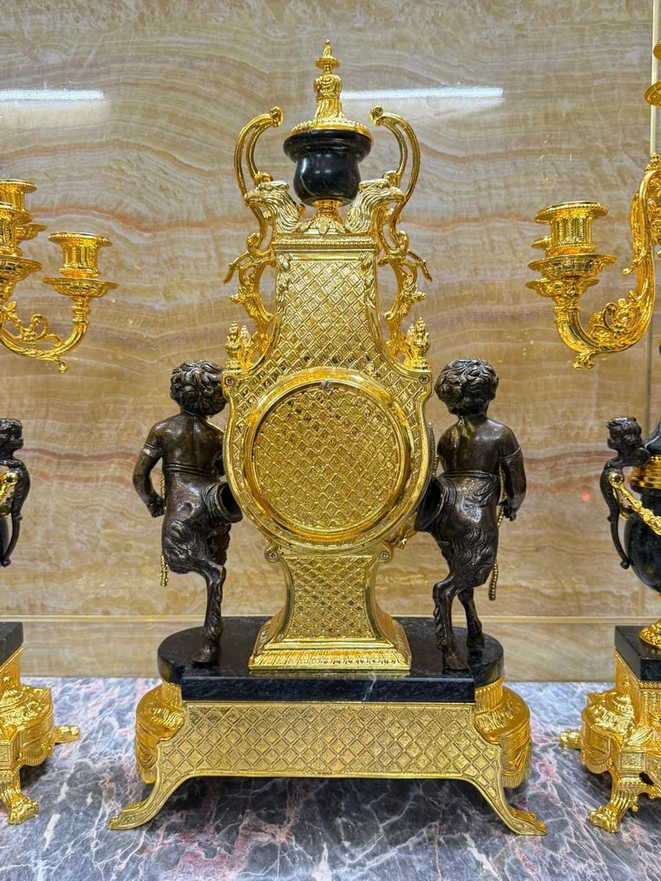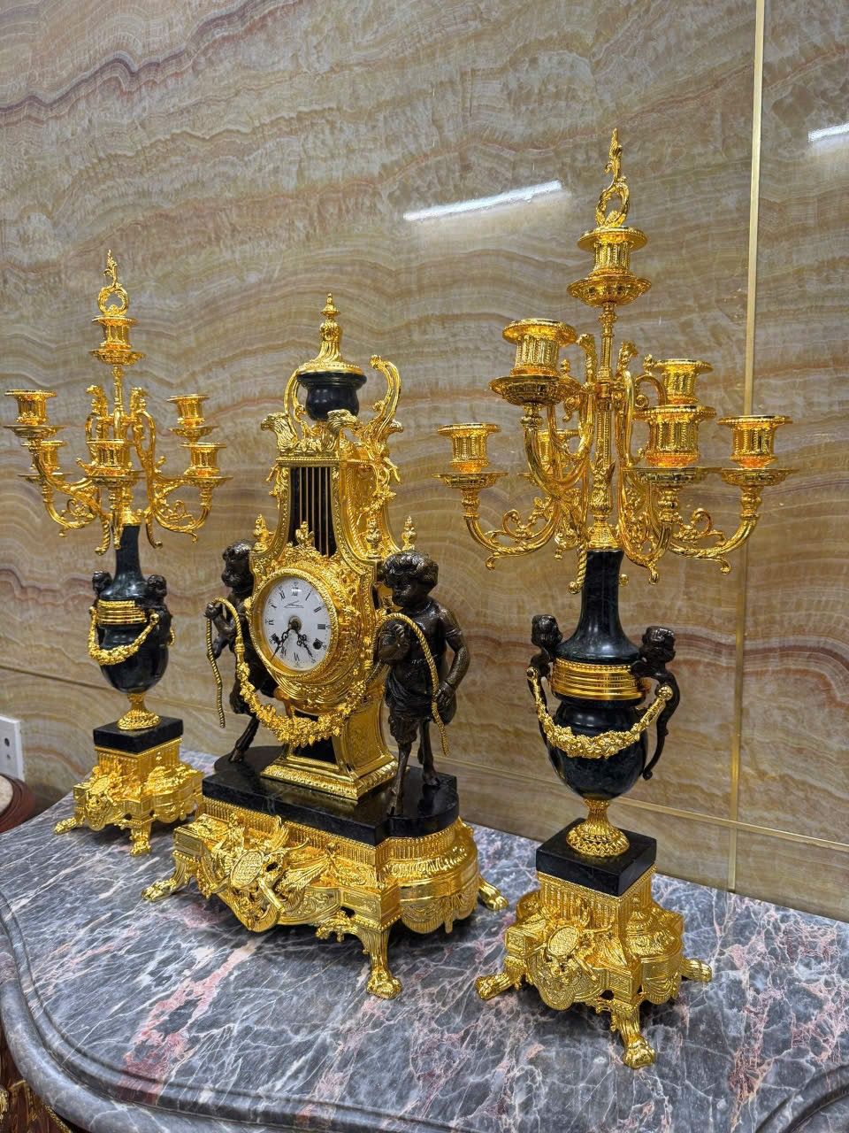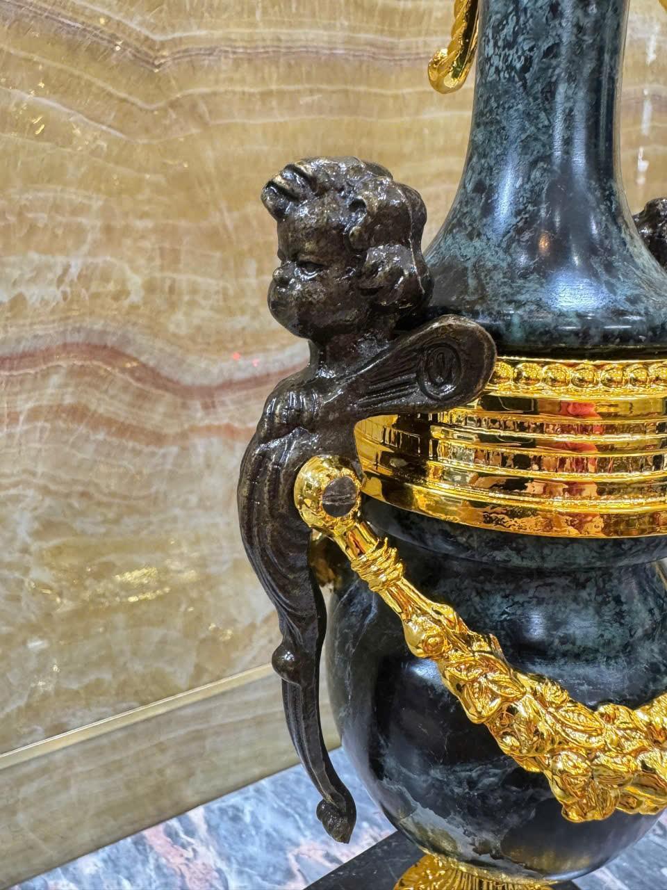•-Bộ Đồng Hồ & Chân Nến Imperial đá Cẩm thạch xanh - made in ITALY