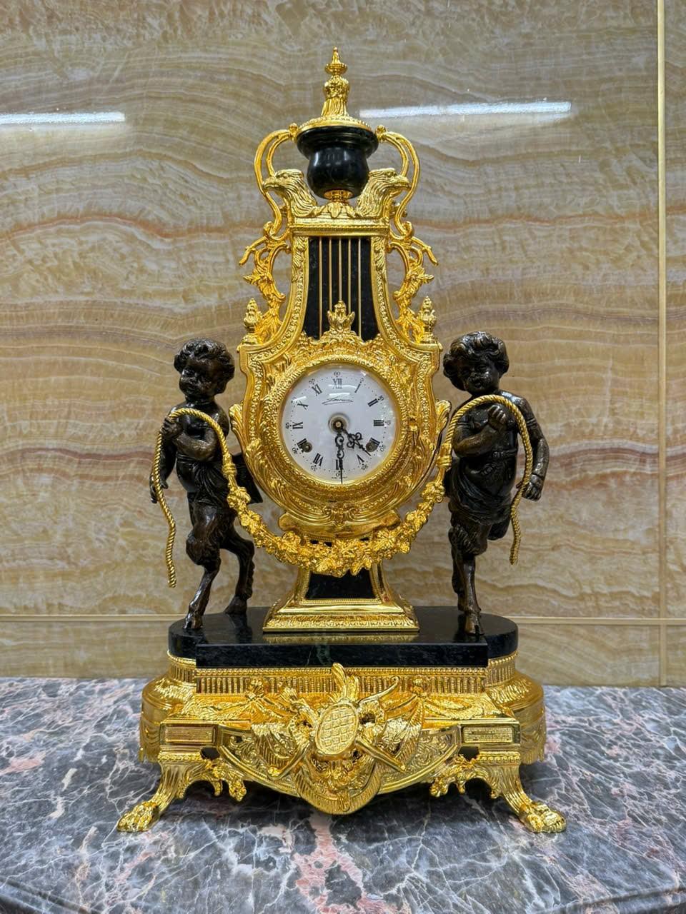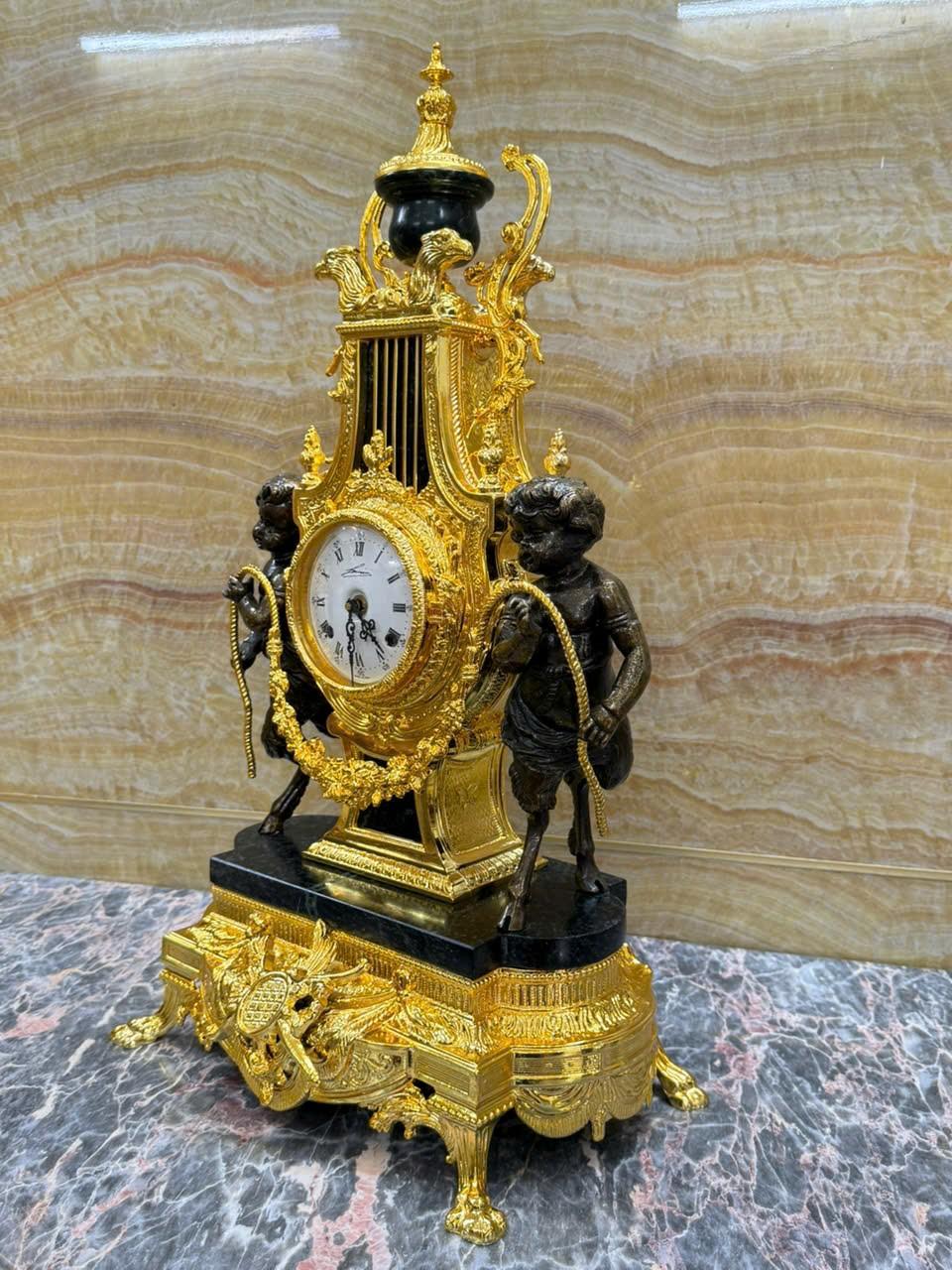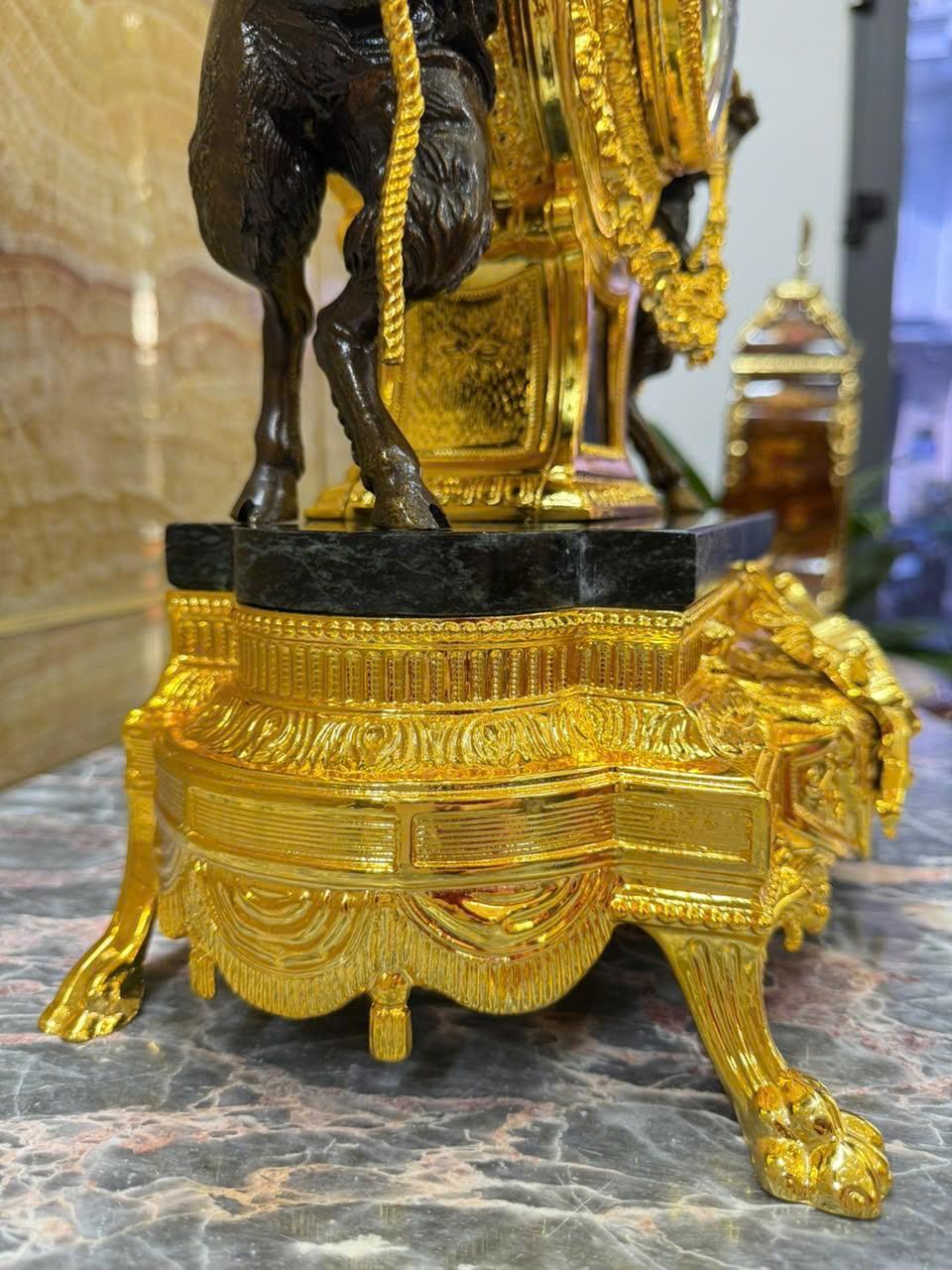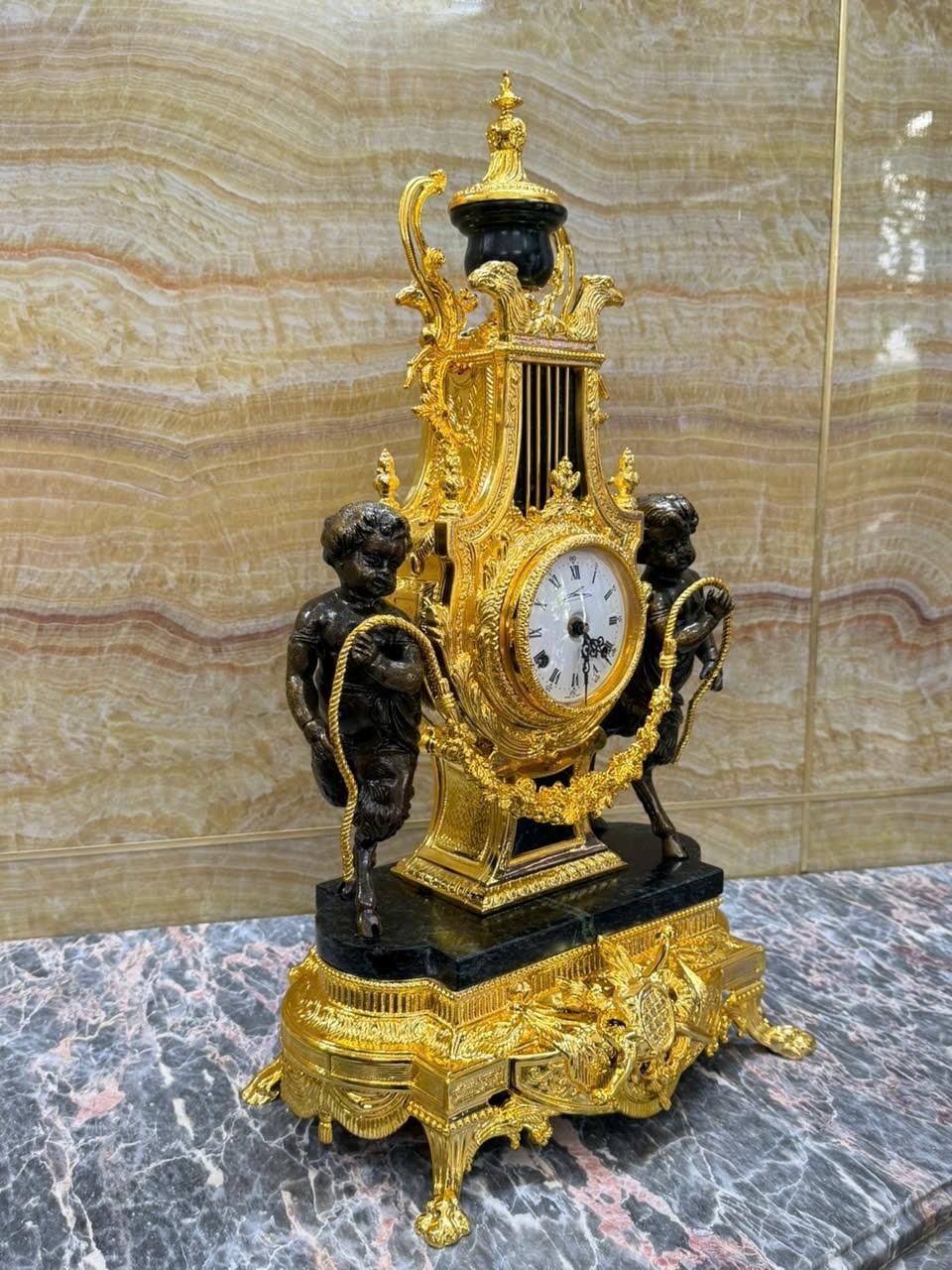 •-Bộ Đồng Hồ & Chân Nến Imperial đá Cẩm thạch xanh - made in ITALY