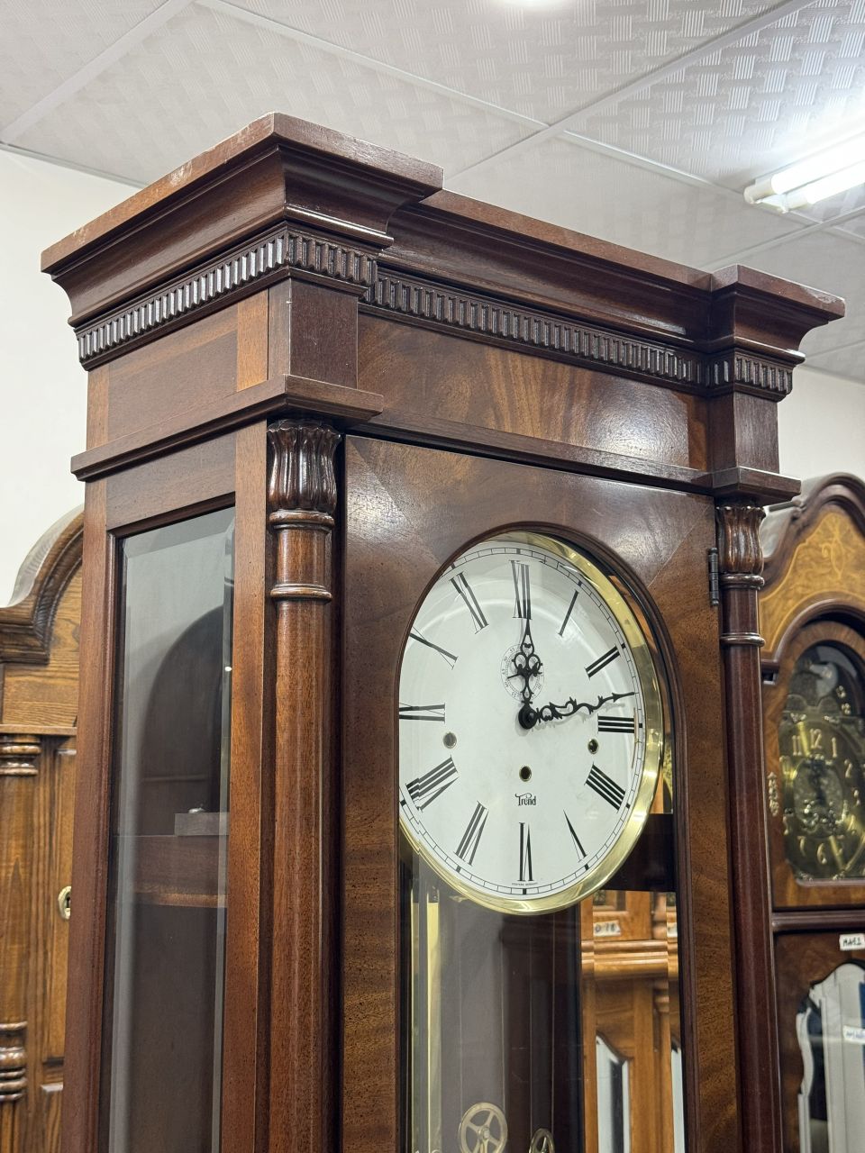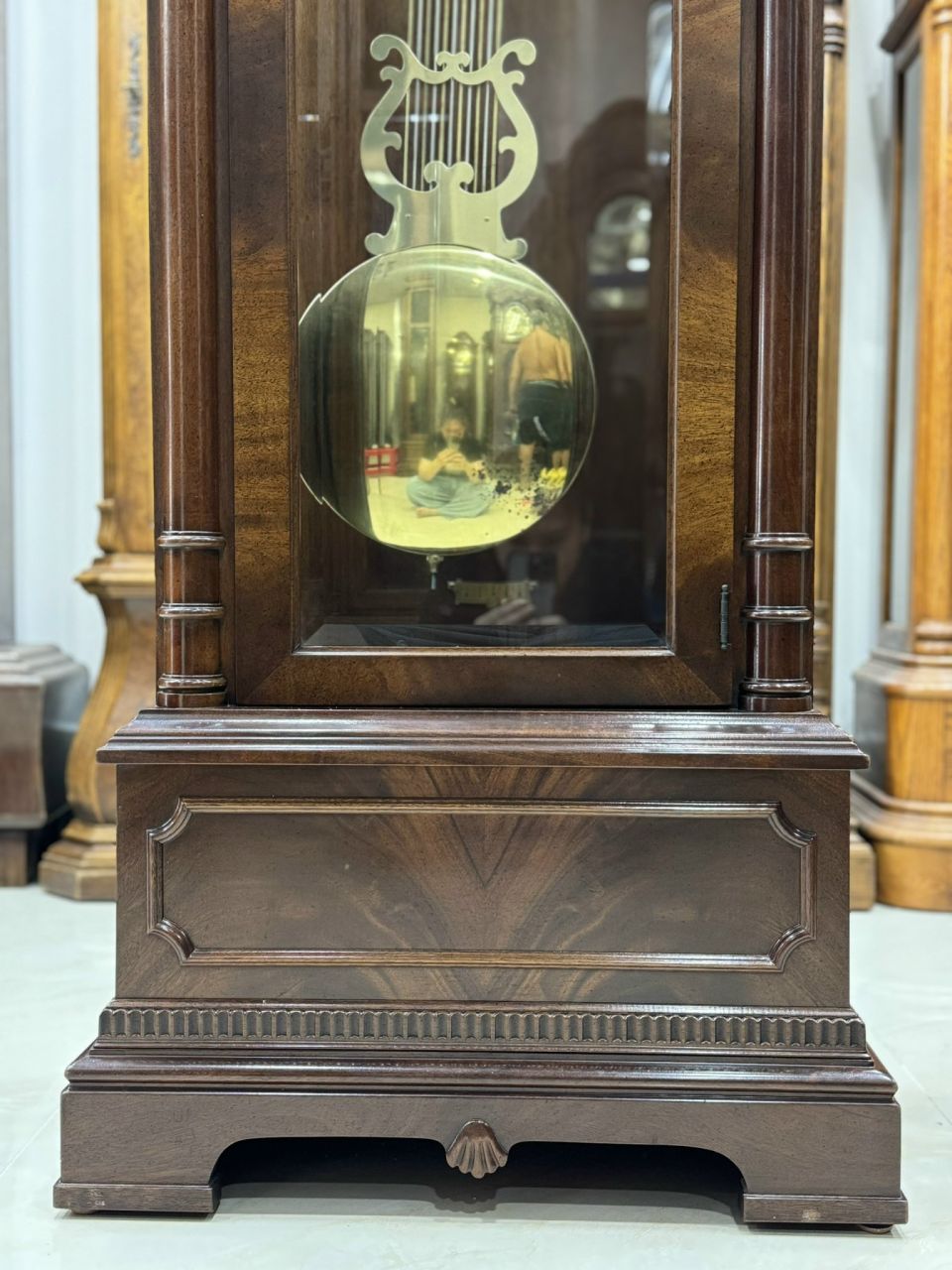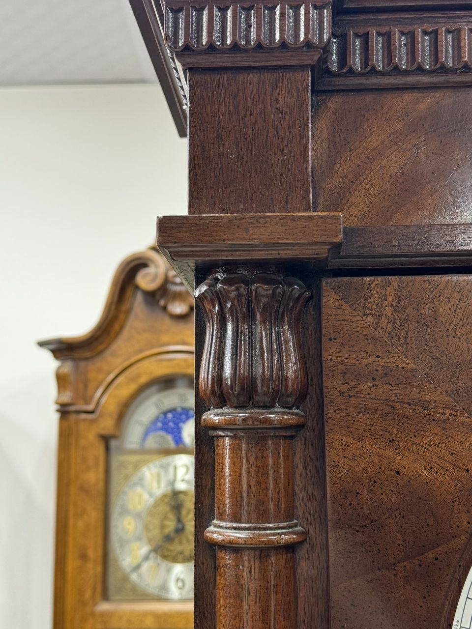 ✨️Toàn thân gỗ sồi chạm khắc nổi vân đậm rất đẹp, mặt số lớn tráng men dễ nhìn