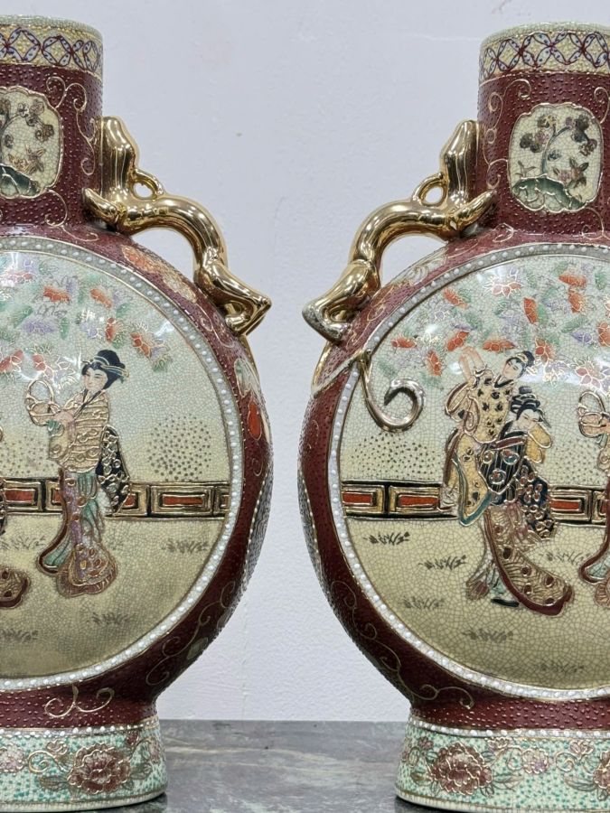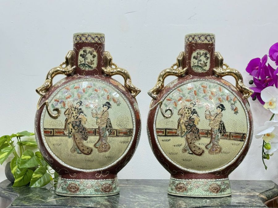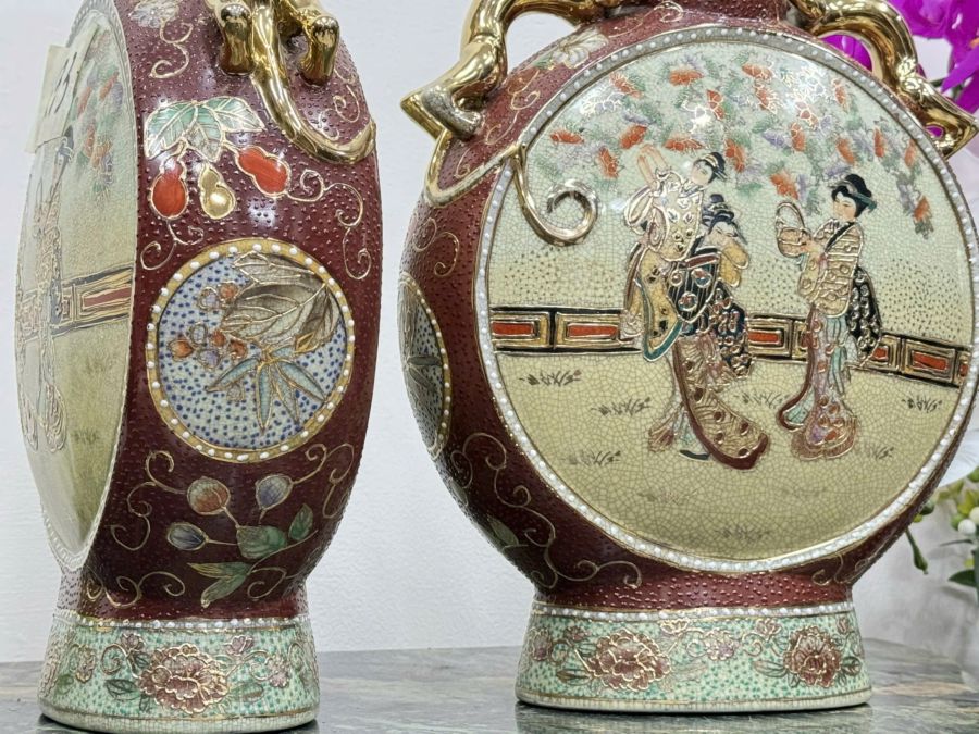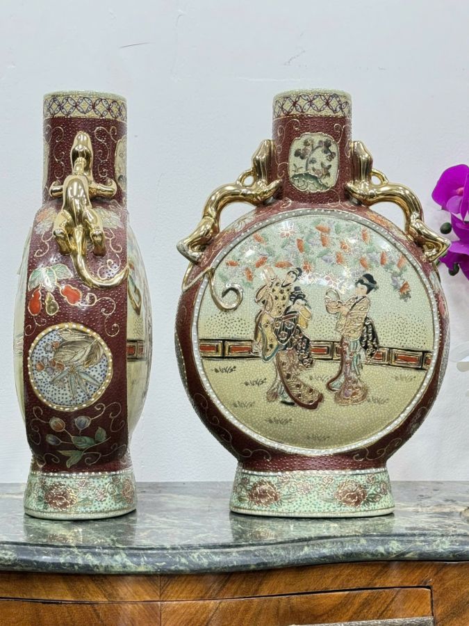 [ CÓ TRIỆN MỘC] - Bình Sứ Satsuma Vẽ Vàng Họa Tiết Tam Cô Nương Size Khủng