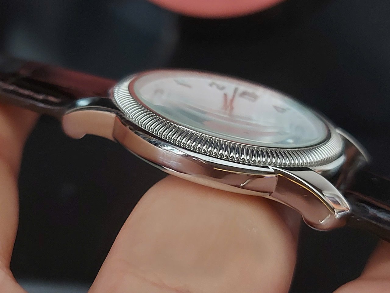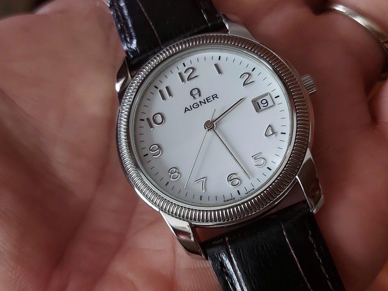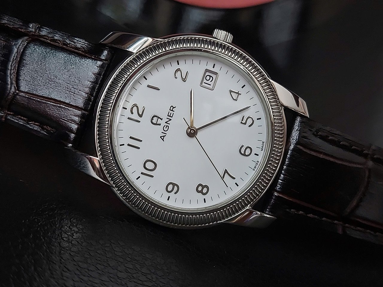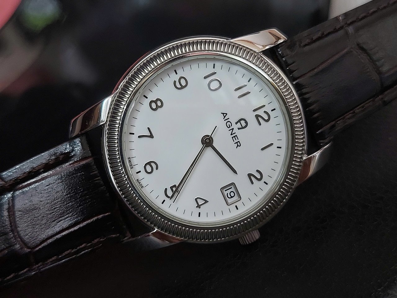 Size 37. Thiết kế mẫu rất đẹp càng to. Thương hiệu nổi tiếng cao cấp Thuỵ Sĩ. Máy quartz . Giá mới trên 500 ur. ! Cảm ơn. LH 0906830026