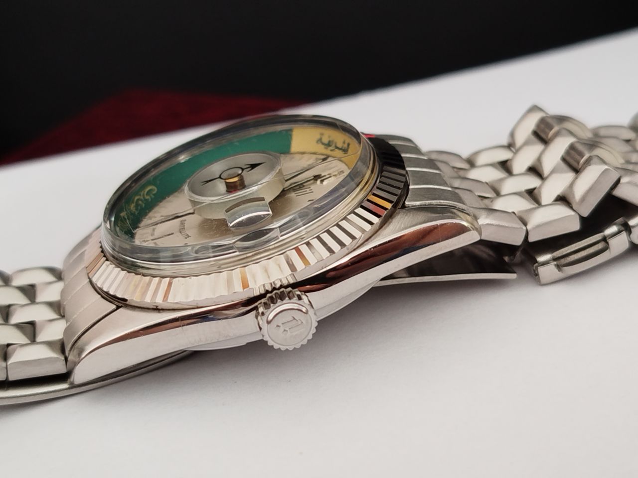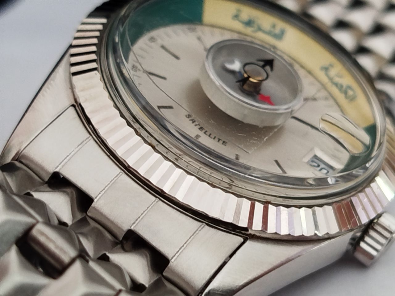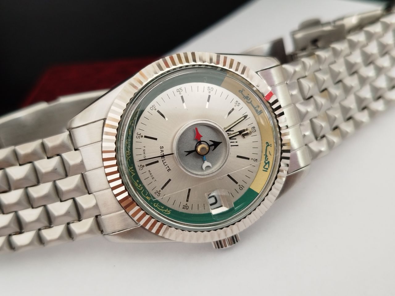 Hàng hiếm. Đồng hồ Thụy Sĩ sản xuất thập niên 70 cho Thị trường Á Rập đặt làm riêng. Size 35. Mới như nos. Toàn thân ss. Hàng sưu tầm lưu trữ cứng ngắt. Cảm ơn các Bác. LH 0906830026
