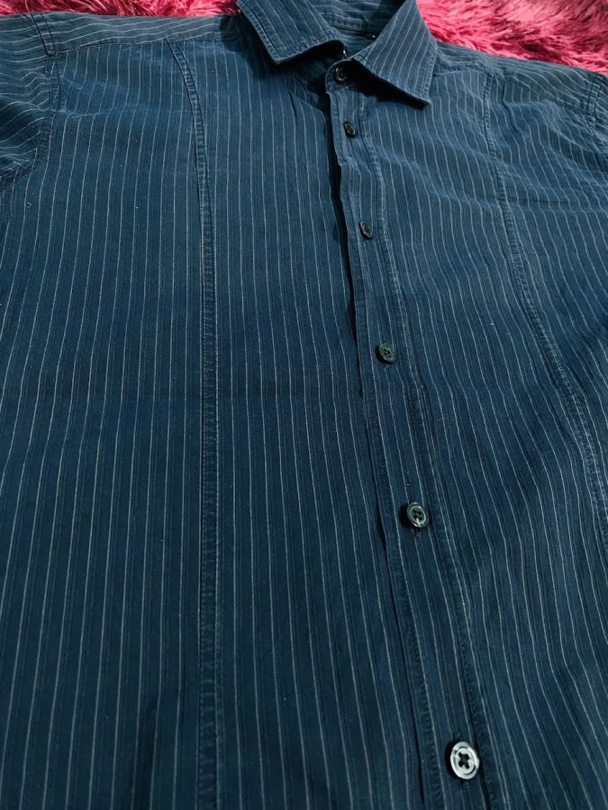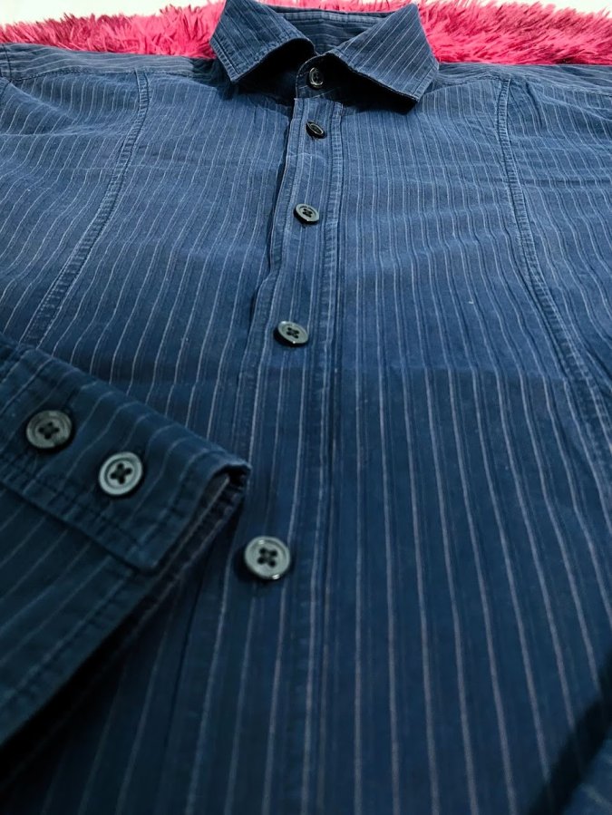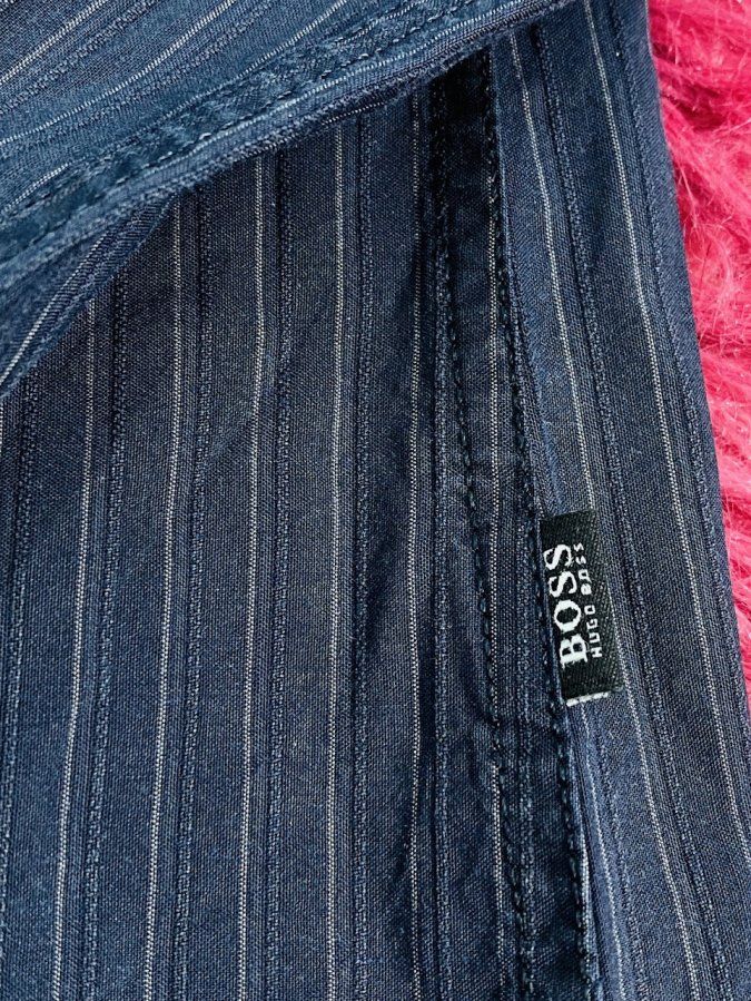 Họa tiết: Kẻ sọc dọc nhỏ (Pinstripe) màu trắng nhạt. Họa tiết sọc dọc không chỉ là biểu tượng của thời trang cổ điển vượt thời gian mà còn tạo hiệu ứng thị giác giúp người mặc trông cao và thanh mảnh hơn.