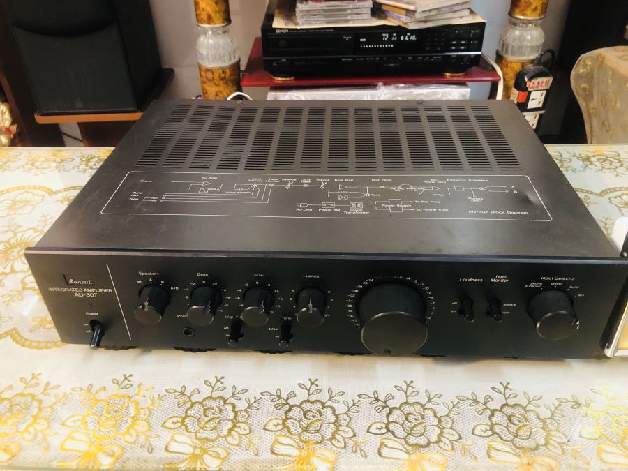 🌹🌹👉Amply Sansui AU 307 đẹp như mới ,nguyên zin,hoạt động hoàn hảo mọi chức năng.Điện 100V,công suất 115W,chạy 4 sò sắt Sanken danh tiếng,đánh 2 đôi loa A,B cùng lúc từ 4 đến 16 ôm.Máy có nút loudness, âm sắc tốt,hay hơn nhiều đời 607 sau này ,do dùng cục nguồn to,dòng lớn nên đánh rất tốt nhiều loa Mỹ ,Nhật.