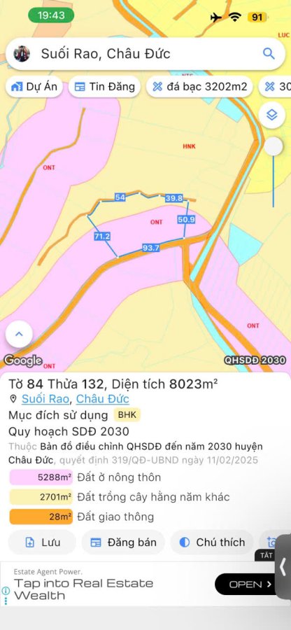 : Đối diện khu du lịch suối giàu . Tổng dt 1000m như sơ đồ . Mỗi lô có 80 thổ cư .