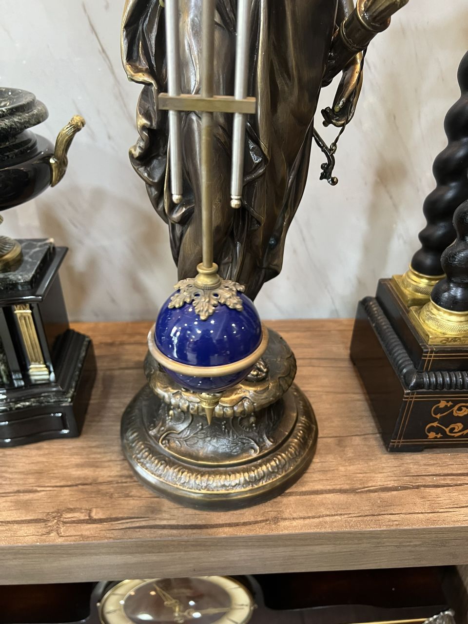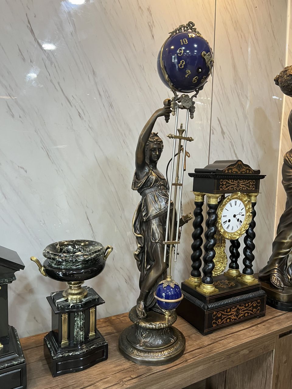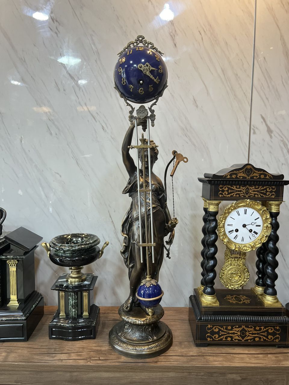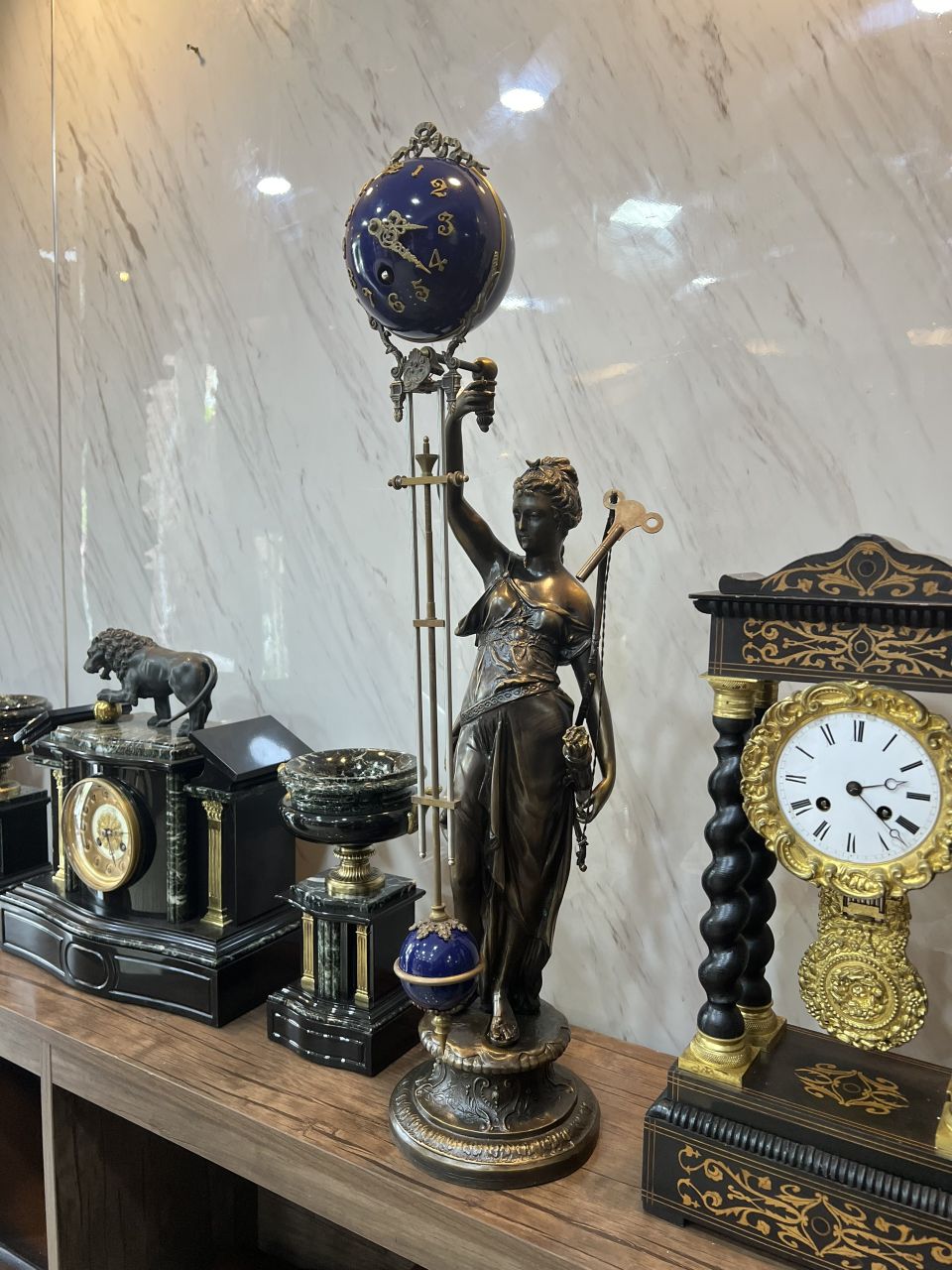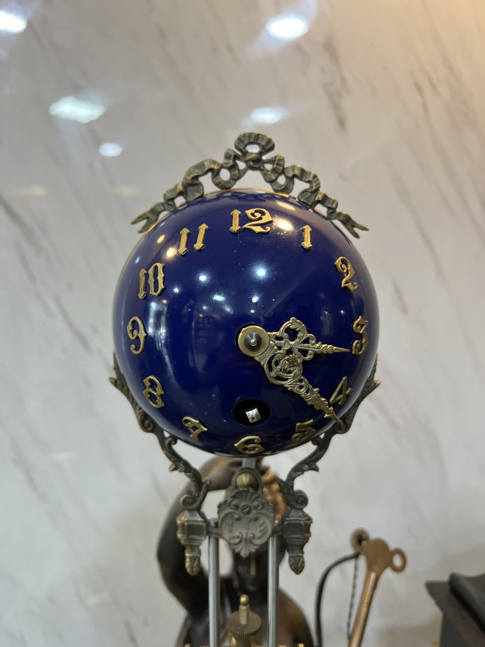 +⃝ Máy : Chính hãng ANTONIA & Company 1 lỗ, hoạt động quả lắc, cơ chế lắc lư được cân bằng trên thanh trục nối từ tay của bức tượng. Là chiếc đồng hồ để bàn sưu tầm & hiếm gặp.