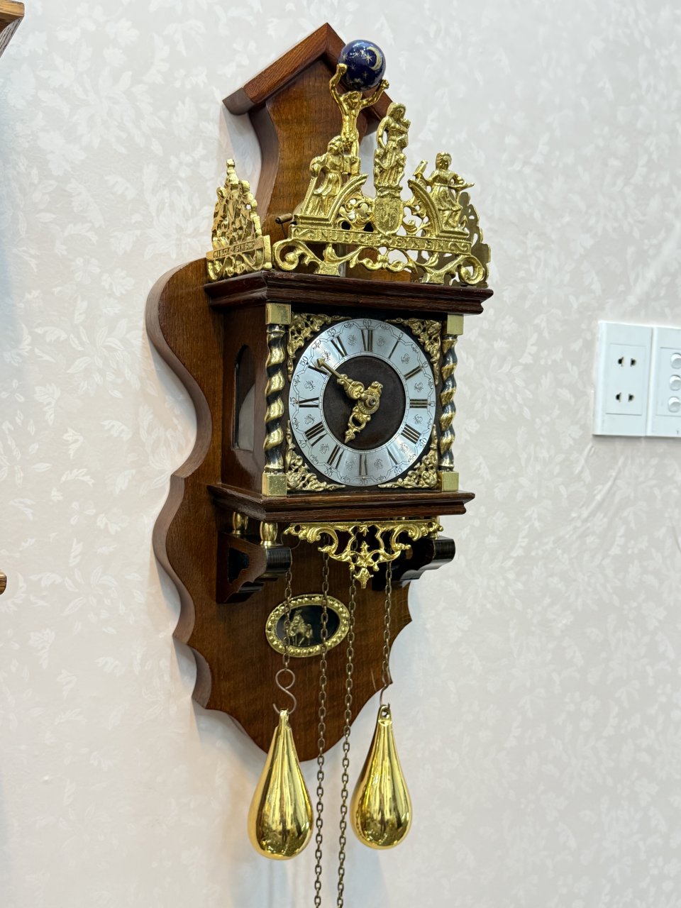 +⃝ Máy : Đức 2 tạ xích, hoạt động quả lắc, chạy tuần lên dây. Sở hữu 1 chuông chén 1 búa, 30” phút điểm chuông (âm thanh cổ điển - chất âm vang hoài cổ).