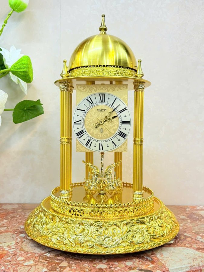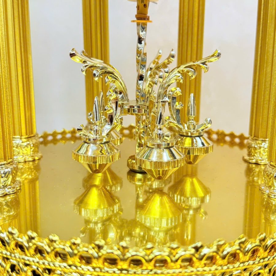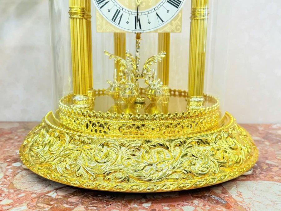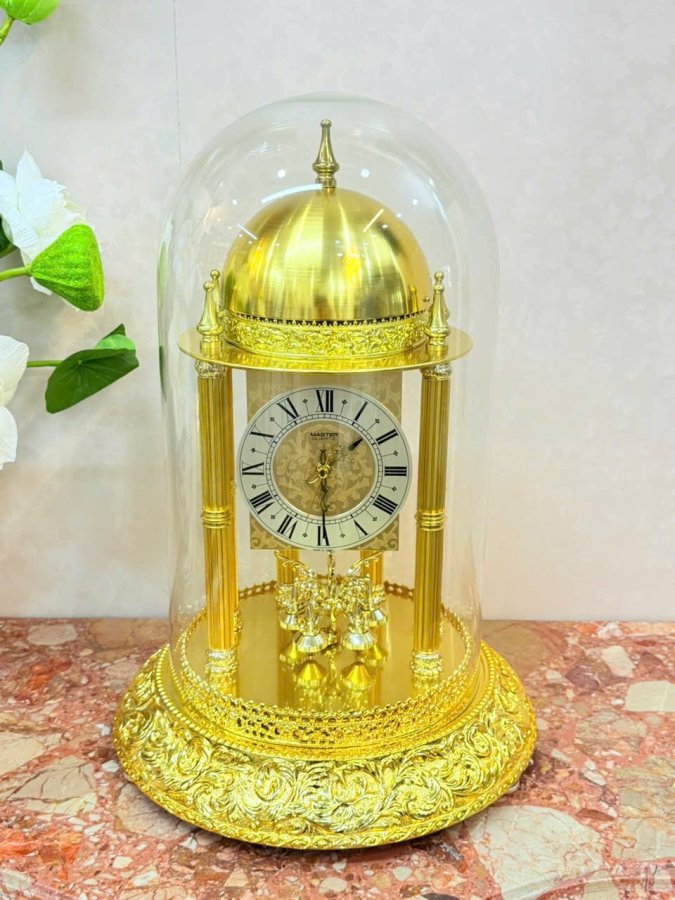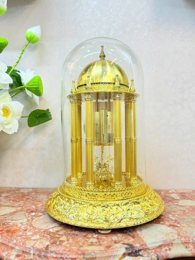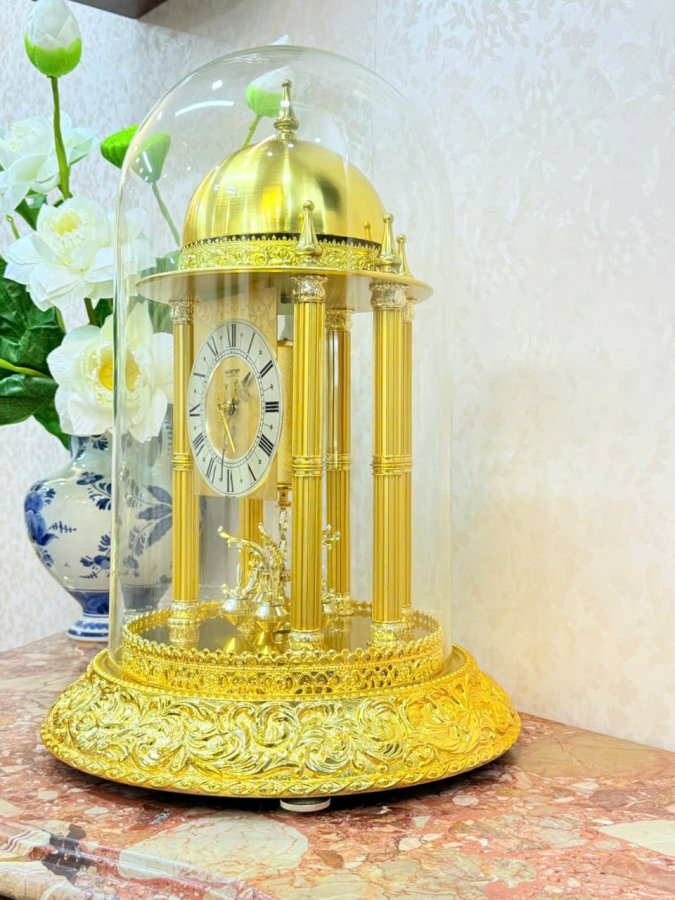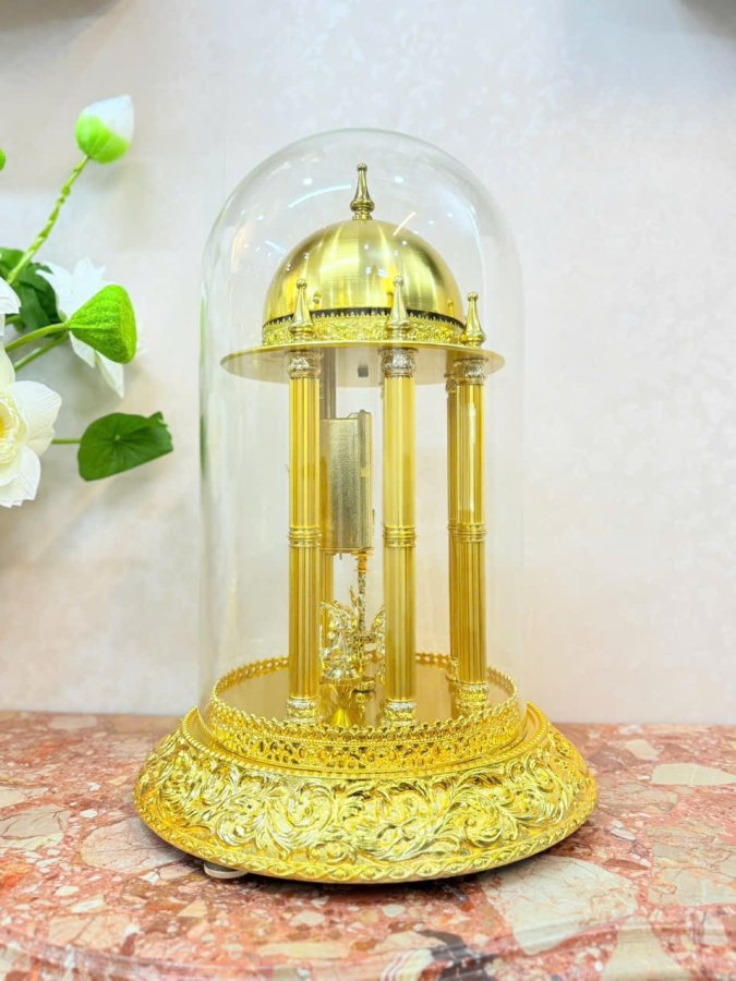 , đế đồng đúc hoa văn nổi lắc kê vàng sang trọng .