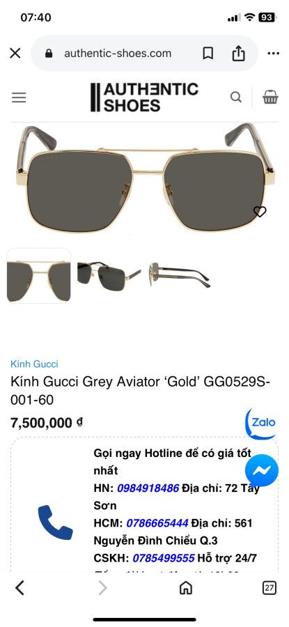 🫶 Kính Gucci Grey Aviator ‘Gold’ 👉 Mẫu này đeo dã man, gọng kính là nhựa trong nhé👉 New Fullbox + Size 60👉 Ngân lượng : 4t600k ( Store 7t5 )