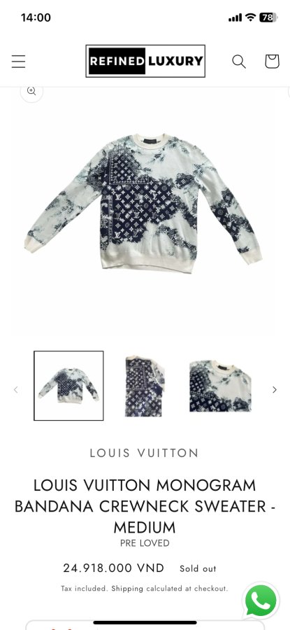 🫶 LV MONOGRAM BANDANA CREWNECK Sweater 👉Like new 👉 Kt: V49-N53-D71👉Ngân lượng : 20t600k ( Cái cũ hơn Web bán cũng 25t )