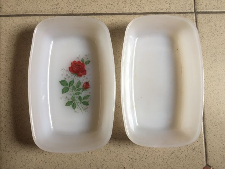 * 02 dia Arcopal chữ Nhật của Pháp xưa, cao vành gần 4cm, ngang 11,5cm, dài 18cm, lành bán cả hai 600 ngàn - bao gủi :