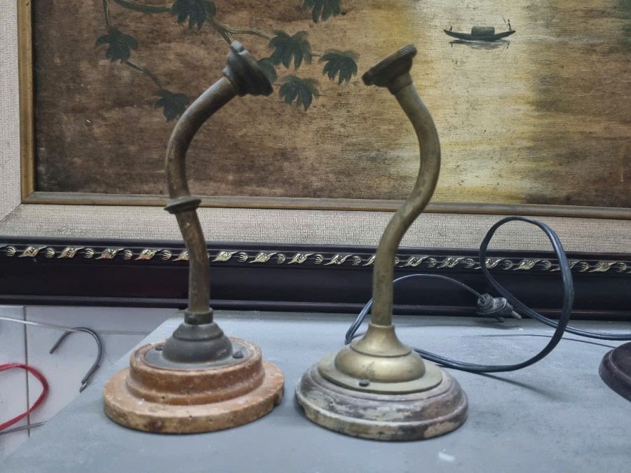 02 Tay đèn đồng đế gỗ. Cao 18 cm. Đầu xuân. 390k/ 2.