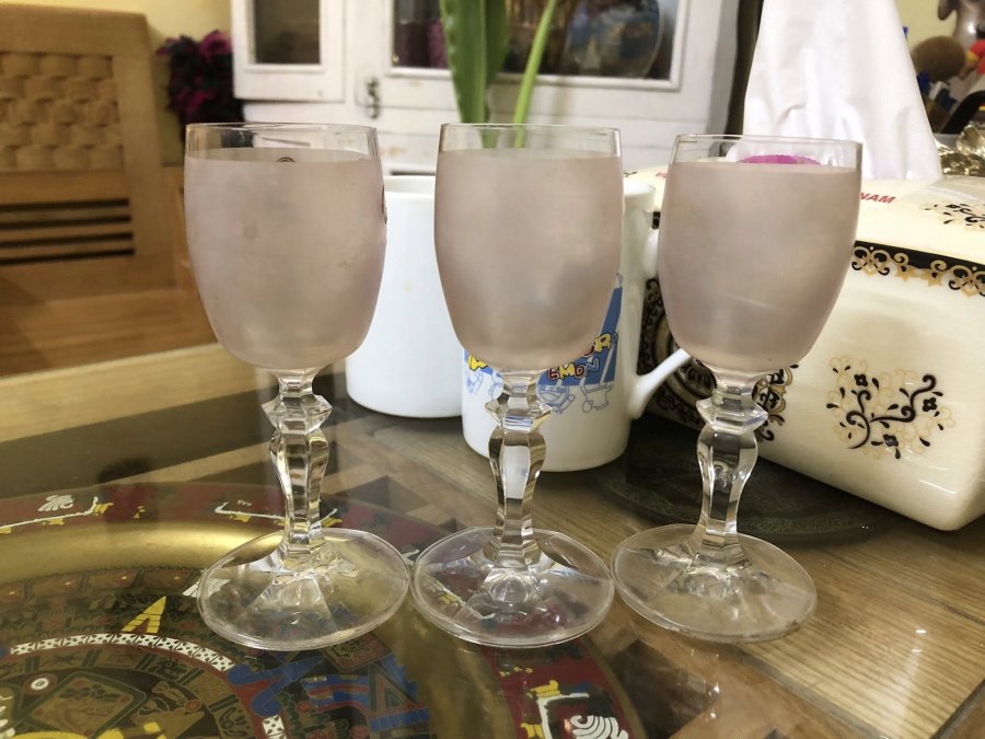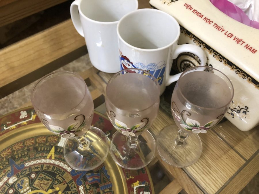 03 ly hoa văn màu, nổi sang trọng cho ae ghép bộ, chất liệu pha lê, tình trạng lành đẹp, kích thước cao 12,7 cm. Giá bán: 300 k + ship.