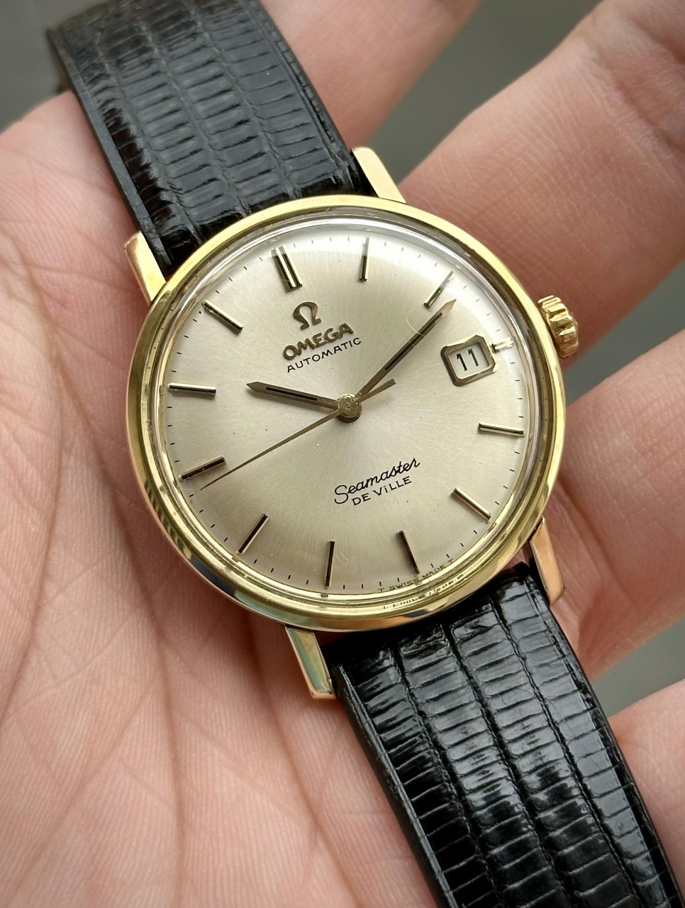 🔸Demi 14K, Niềng Vàng Đúc,4 Tay Cap Vàng,Đáy Logo Sắc Nét.Mặt Số Chải Tia Tâm Xuất Sắc,Cọc Số Cài Đá Kim Vàng Bắt Sáng Rất Tốt.