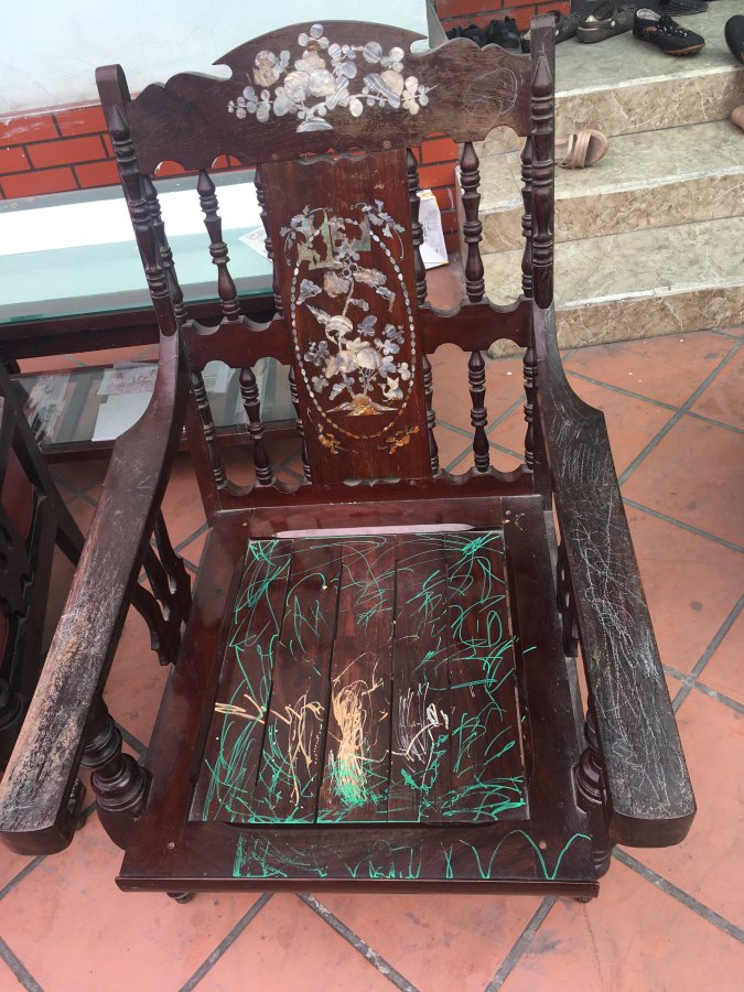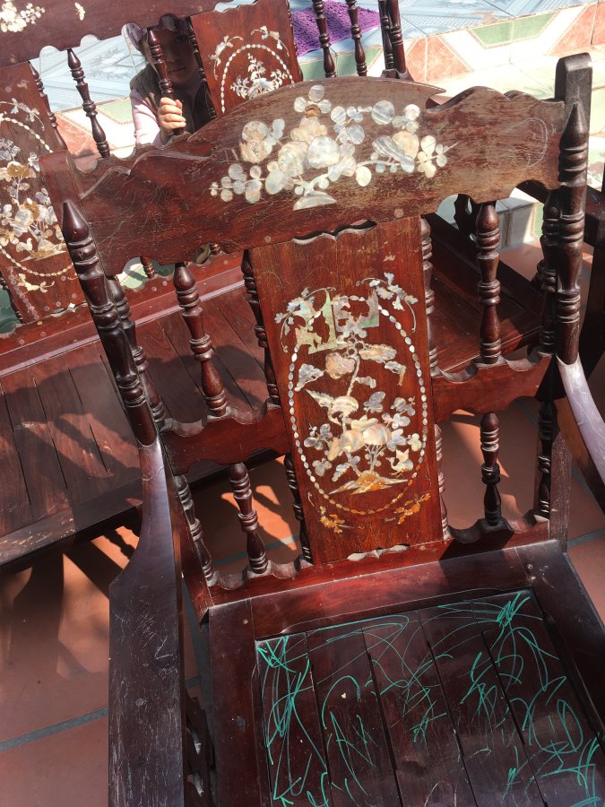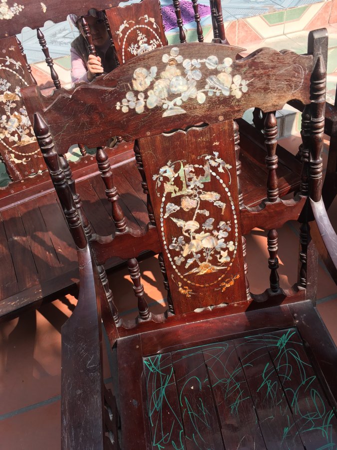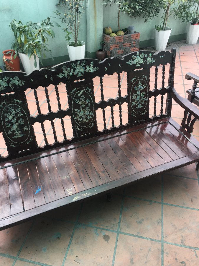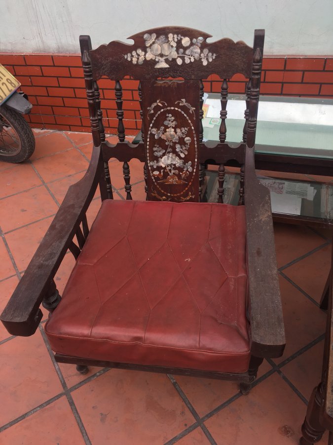 Gl ae bộ bàn ghế khảm trai cổ xưa ( đóng năm 1993 ) còn rất đẹp