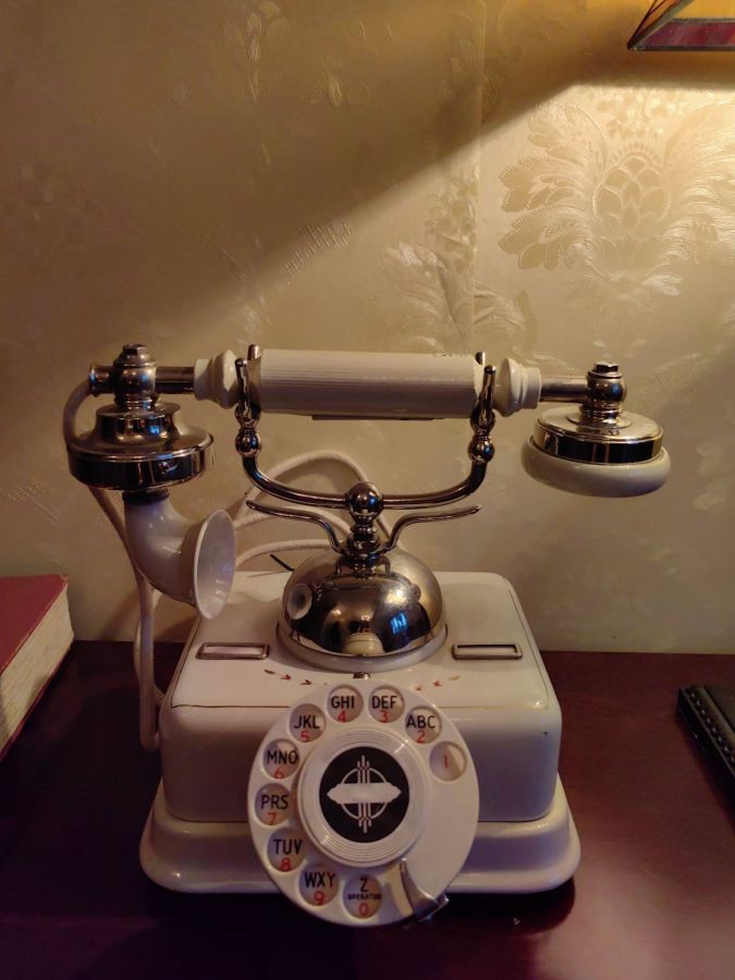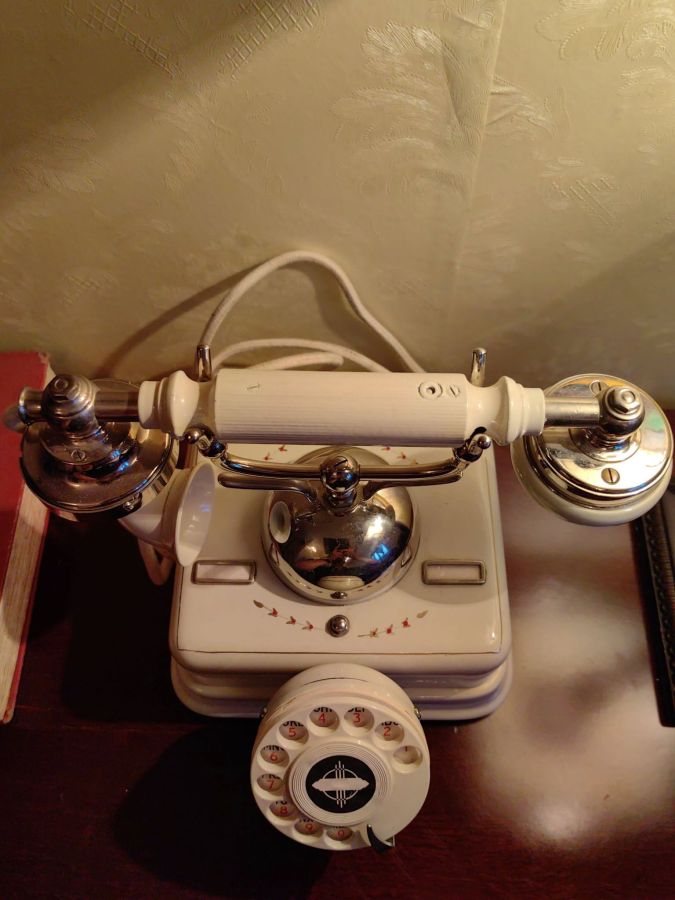 1 chiếc điện thoại quay số cổ điển . (Aktieselskab Rotary) Sản phẩm vẫn còn hoạt động tốt. Nặng : 4.2kg Kích thước : cao 22cm, ngang 25cm, rộng Giá bán : 5.290.000 đ SDT liên hệ : 0326069733 Địa chỉ : Trang trí Mỹ Mỹ. 91 Phan Đình Phùng. P1. Đà Lạt