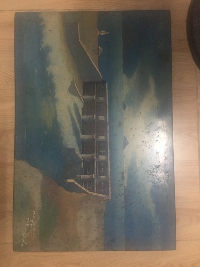 1189. Tranh đập thủy lợi vẽ trên gỗ 60x40cm