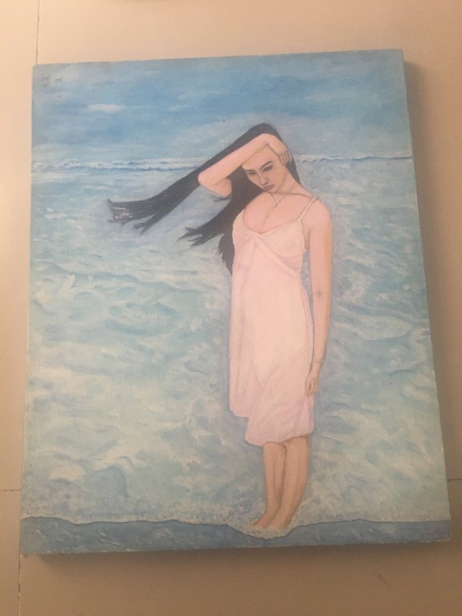 Tranh sơn dầu cô gái bờ biển 40x50cm: 350k+50k ship.