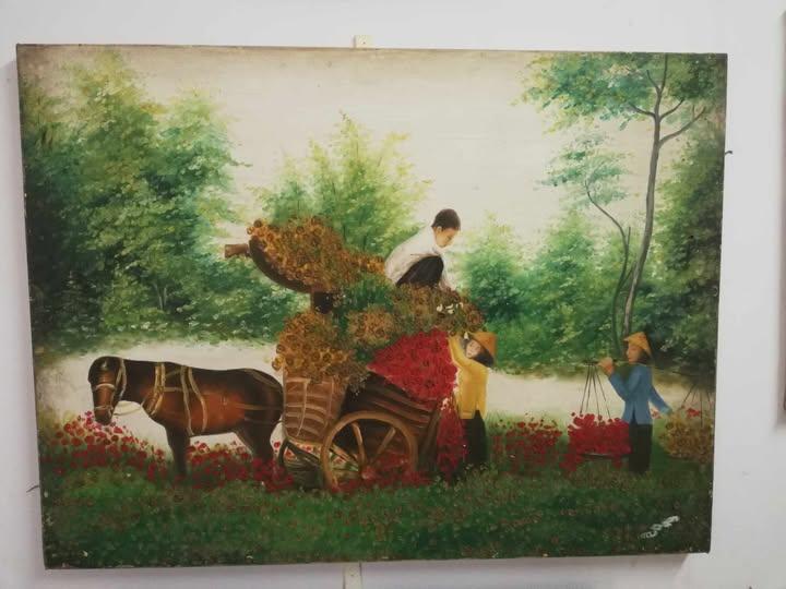 Tranh sơn dầu cánh đồng hoa, kích thước 80x60cm: 500k+60k ship.