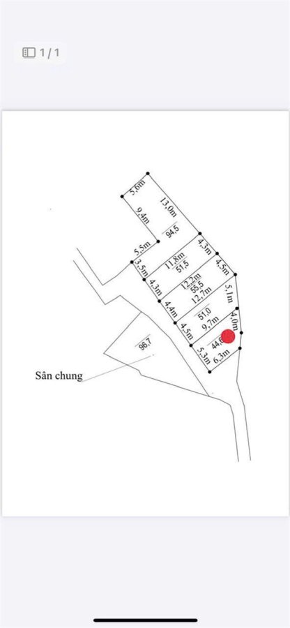 Diện tích: 45.5m2, sổ đỏ chính chủ, pháp lý sạch.