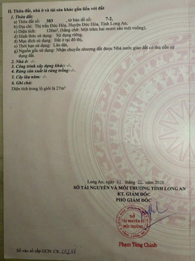 126m2 thổ tại thị trấn Đức Hòa, Long An giá 1,75 tỷ