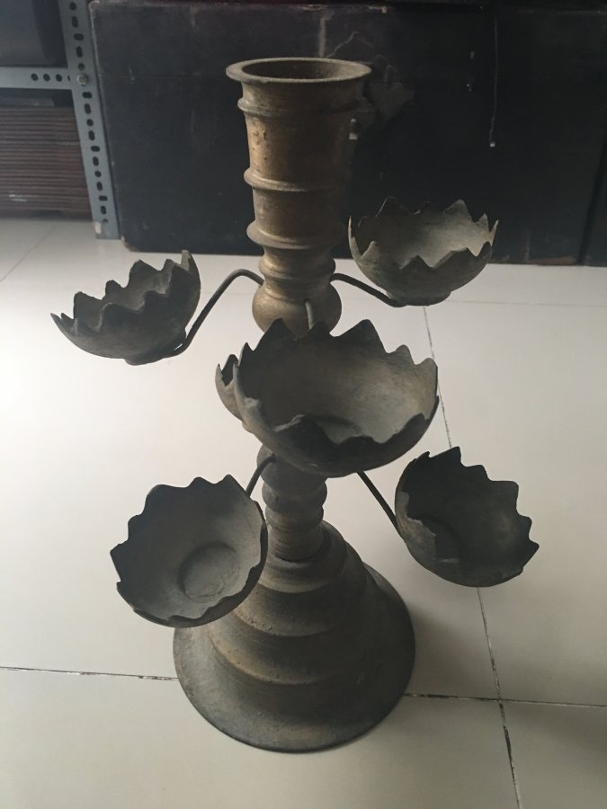 Chân nến xưa bằng đồng cao 40cm, nặng già 2kg, có 5 giá đỡ. Giá 1.200k bao ship.