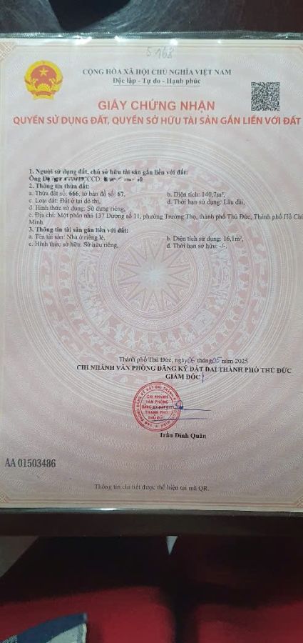 140m2 thổ cư hẻm đường số 11, p Trường Thọ, Tp Thủ Đức giá 12 tỷ