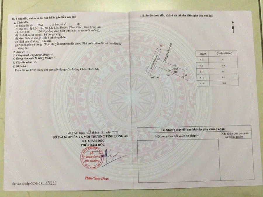 Chủ gửi bán lô đất thổ cư mặt tiền đường Chùa Thiên Mụ ,xã Mỹ Lộc , Cần Giuộc , Long An