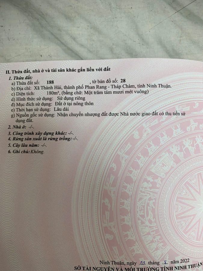 180m2 THỔ CƯ - TÁI ĐỊNH CƯ THÀNH HẢI PHAN RANG NINH THUẬN CHỈ 1 TỶ 3