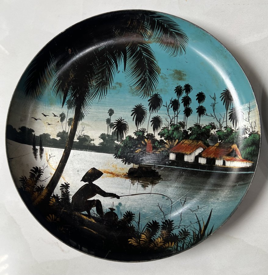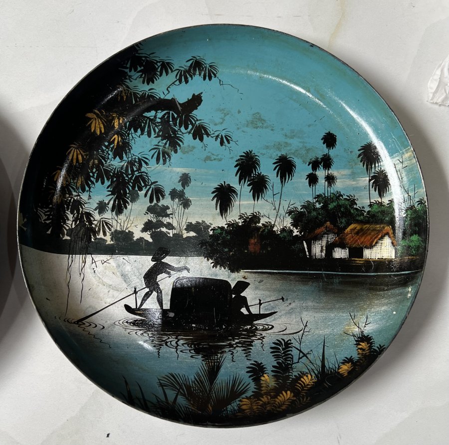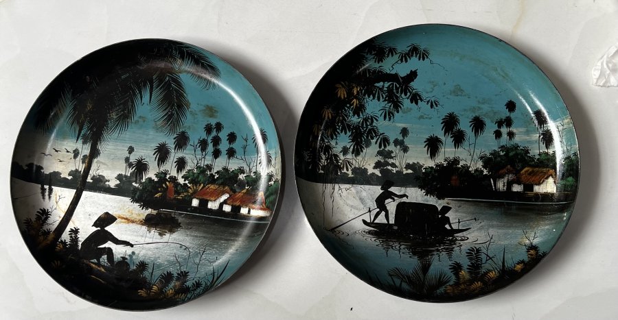 2 cái dĩa Sơn mài nhủ bạc Thập niên 40-50 Đk 25cm Giá 1000k