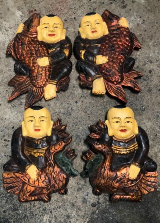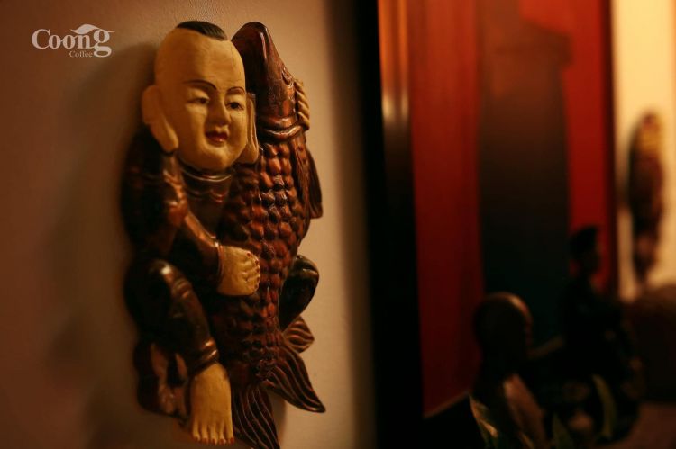 Chất liệu gỗ sơn thếp lấy cảm hứng từ tích cổ truyền thống như Phú Quý - Vinh Hoá của dòng tranh đông hồ xưa.