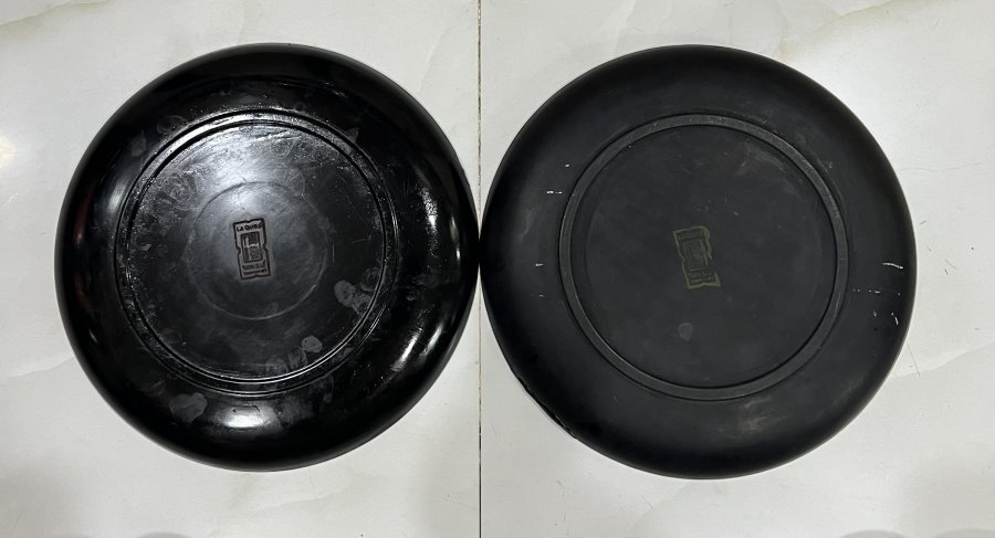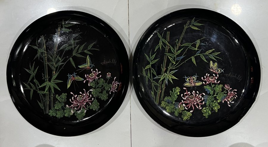 2 dĩa Sơn mài khắc Thành Lễ xưa