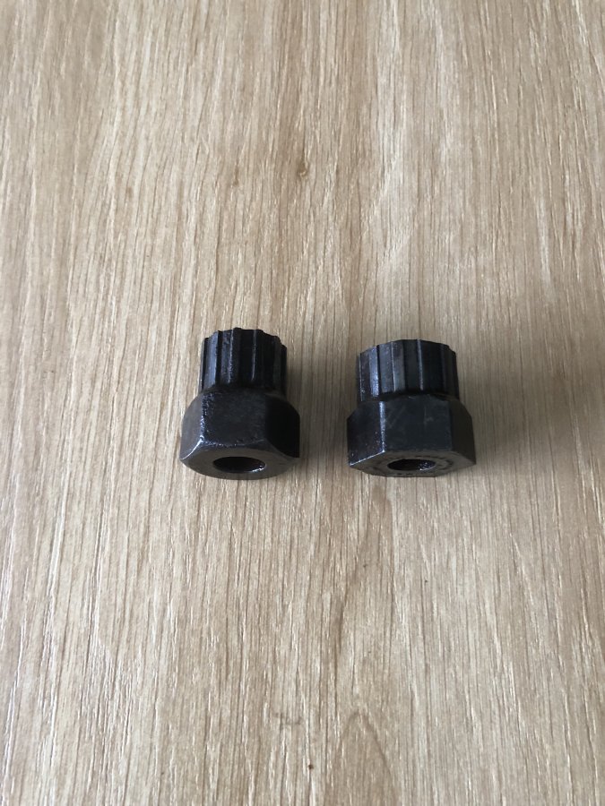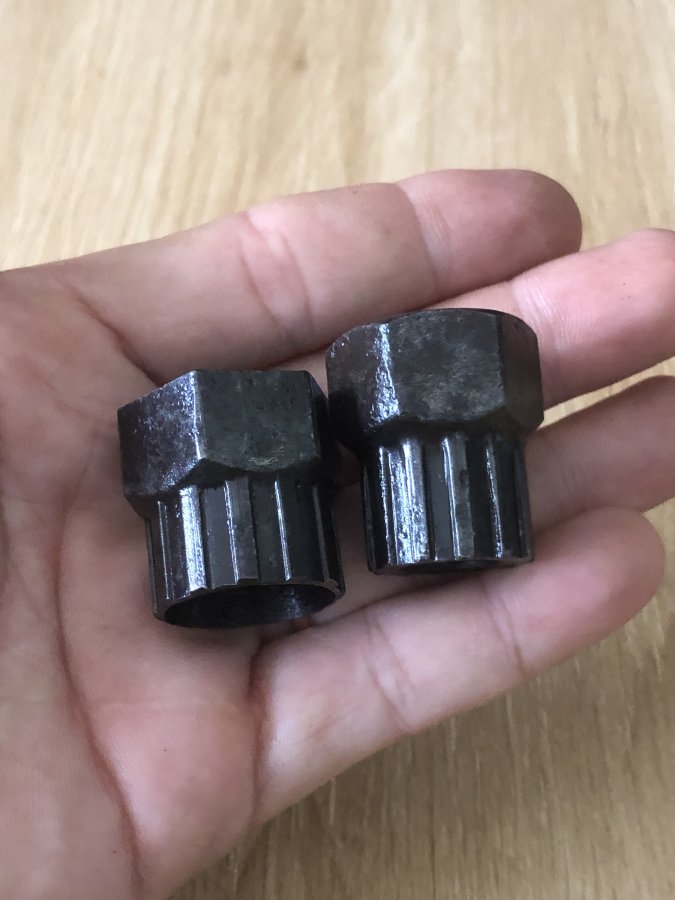 Cặp dụng cụ 2 kích cỡ để sử dụng,1 cái Simano Japan bề mặt có gổ gỉ,răng sử dụng còn đẹp,1 cái size nhỏ hơn,dầy hơn những không thấy ghi hiệu,nhưng tra nguồn gốc thấy giống mẫu của Simano đựng trong hộp nhựa vẫn không có ghi hiệu lên sản phẩm.2 kích cỡ anh chị mua về sử dụng được cho nhiều loại xe rất tiện.Cảm ơn đã xem tin