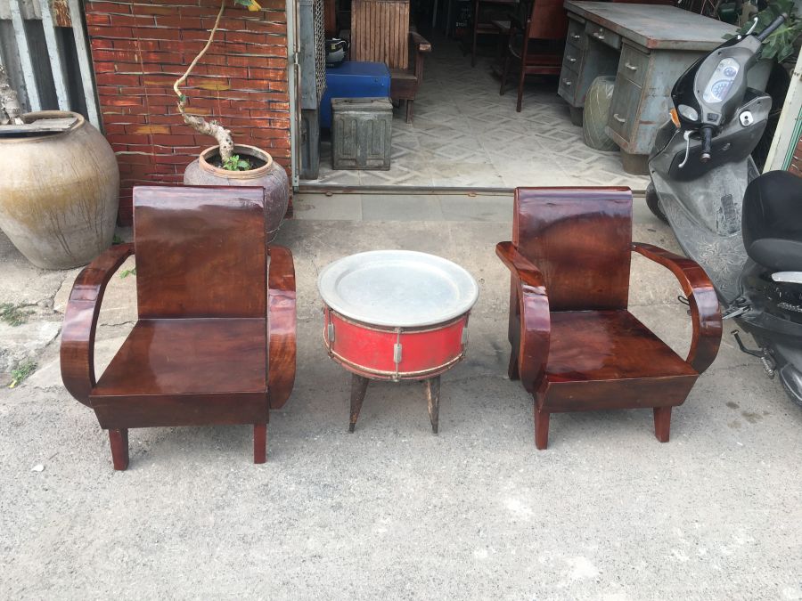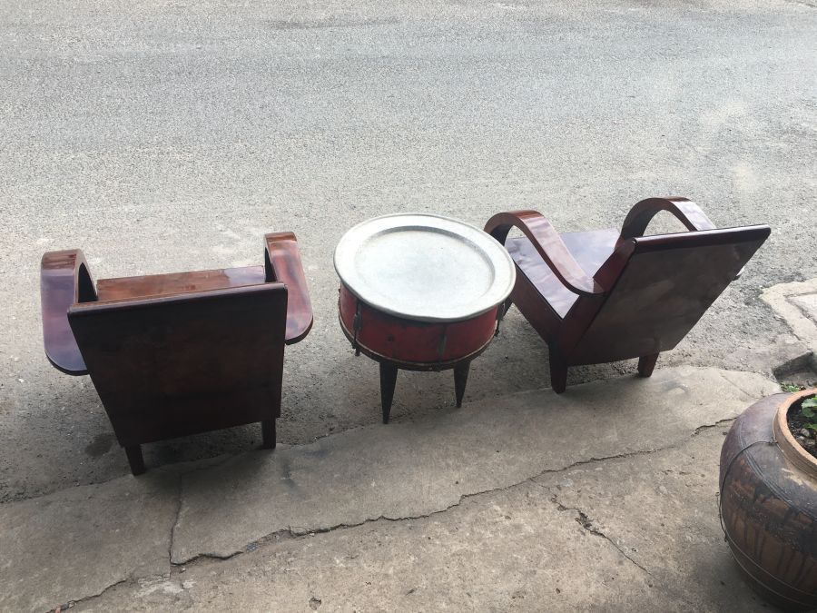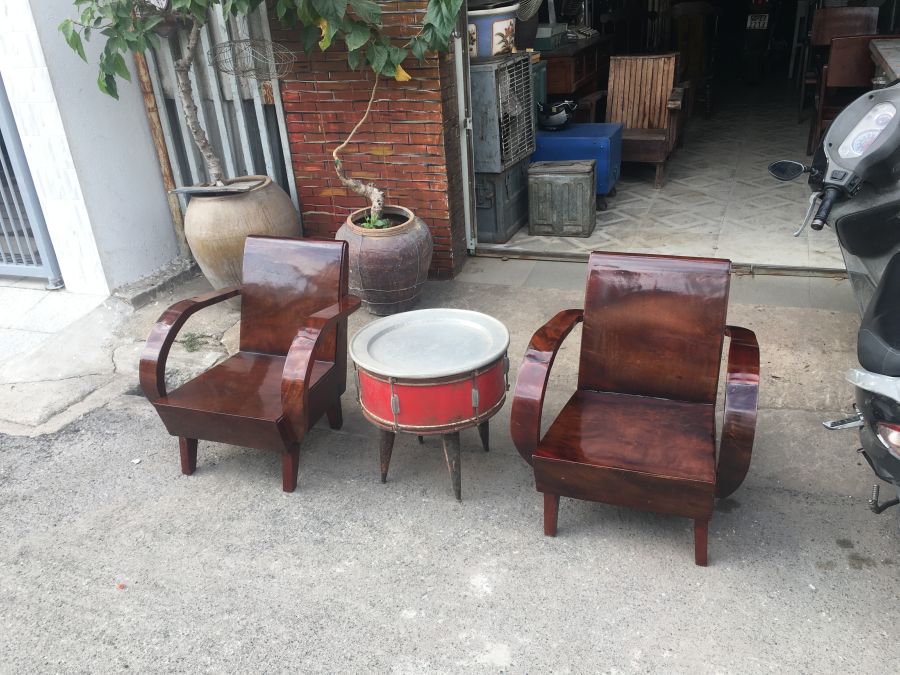 Bán tại nhà 2 ghế salon thùng xưa căm xe mặt gõ. giá 2,9 triệu đồng/2 cái. lấy bàn trống + 950 ngàn đồng.
