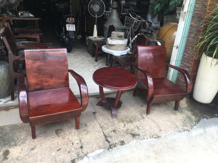 Gl 2 ghế salon thùng xưa còn đẹp căm xe mặt gõ + bàn tròn. giá 4,8 triệu đồng