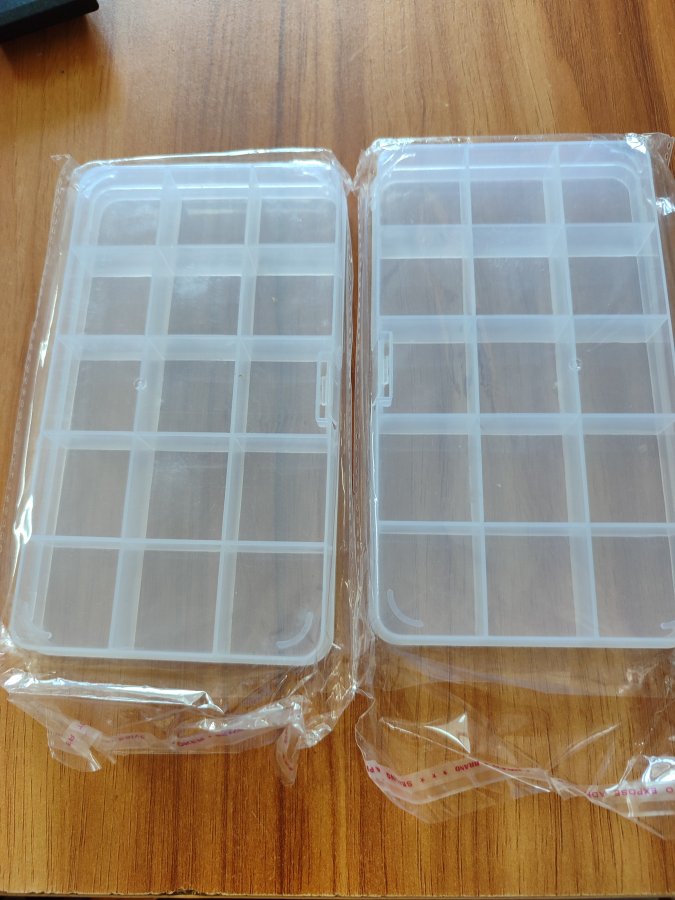 2 hộp đụng linh kiện hàng Nhật chưa qua sử dụng, mỗi hộp có 15 ngăn, kích thước 17 x 9.5 cm