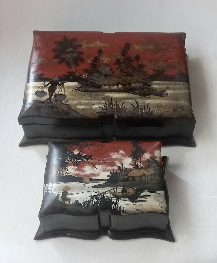 2 hộp sơn mài xưa
