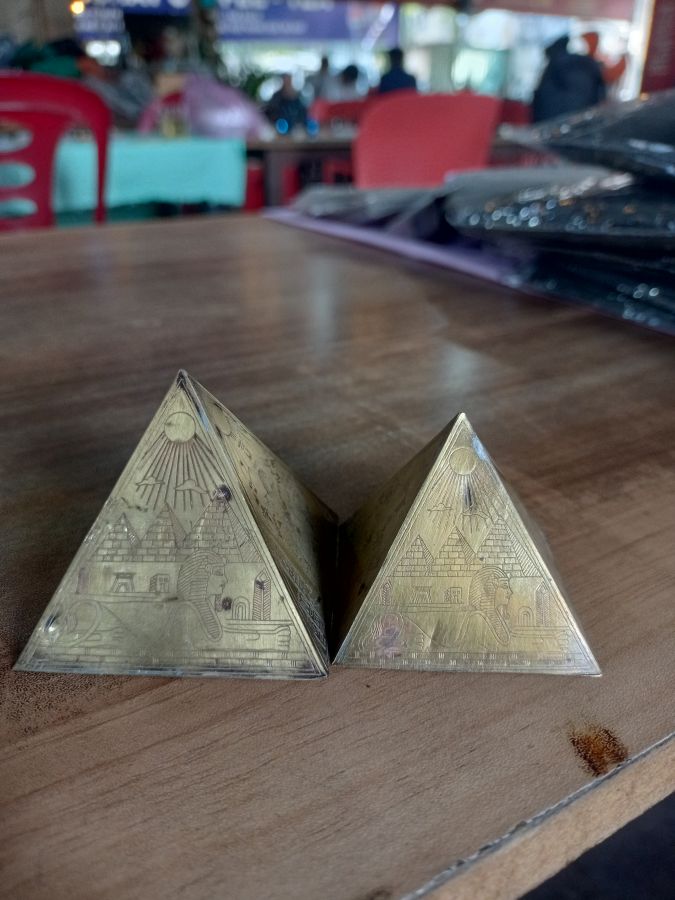 2 kim tự tháp bằng đồng, khắc hoạ tiết thủ công. Giá 500k/2 cái.
