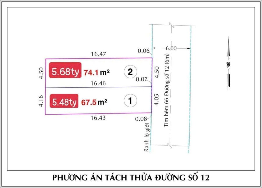 + Lô nhỏ : 4.05x17m CN 67.6m2 giá 5.48tỷ tl