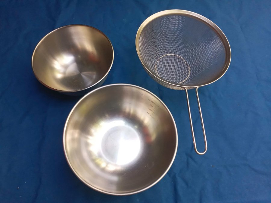 Thau lớn nặng 300g, nhỏ 190g, rổ lược 220g.
