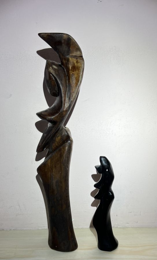 2 tượng gỗ Mỹ thuật