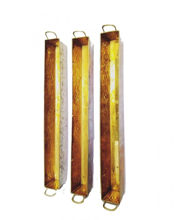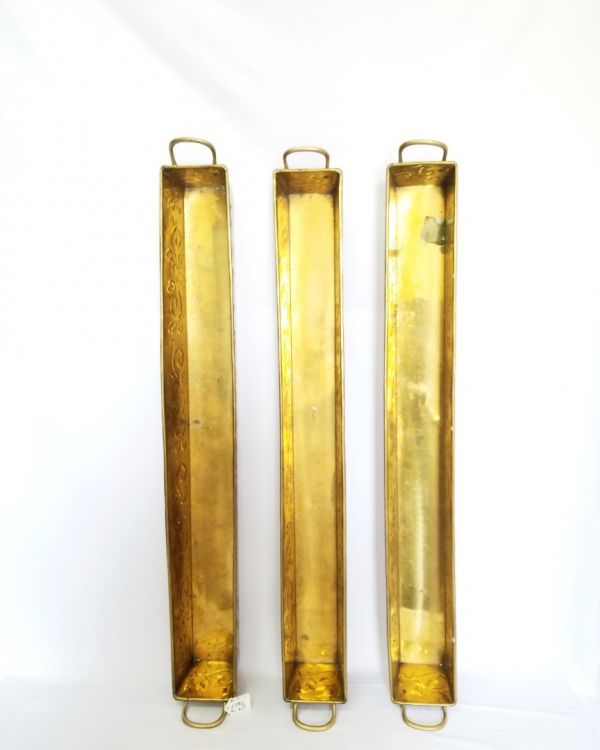 3 cái khuôn đồng dài dùng để cắm hoa , có hoa văn.