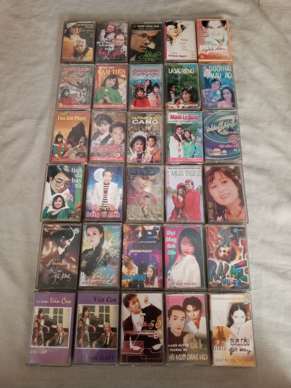 Thanh lý 30 cuồn băng cassette vn đúng bìa đúng ruột, dây băng còn đẹp, âm thanh tốt thanh lý cho ae giá 40000 / 1 cuồn đt 0775183990