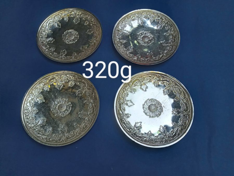 Hàng khui kiện khá mới đẹp như chưa dùng, 4 cái nặng 320g, lòng đĩa có xước nhẹ thôi, hoa văn nối.