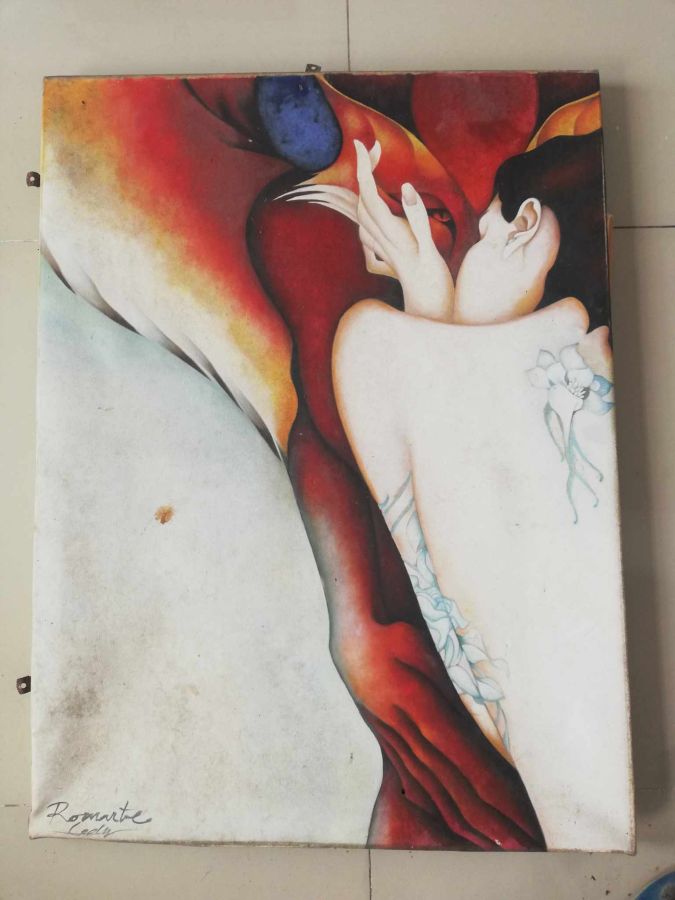 401.Tranh sơn dầu cô ****xăm hoa hồng
